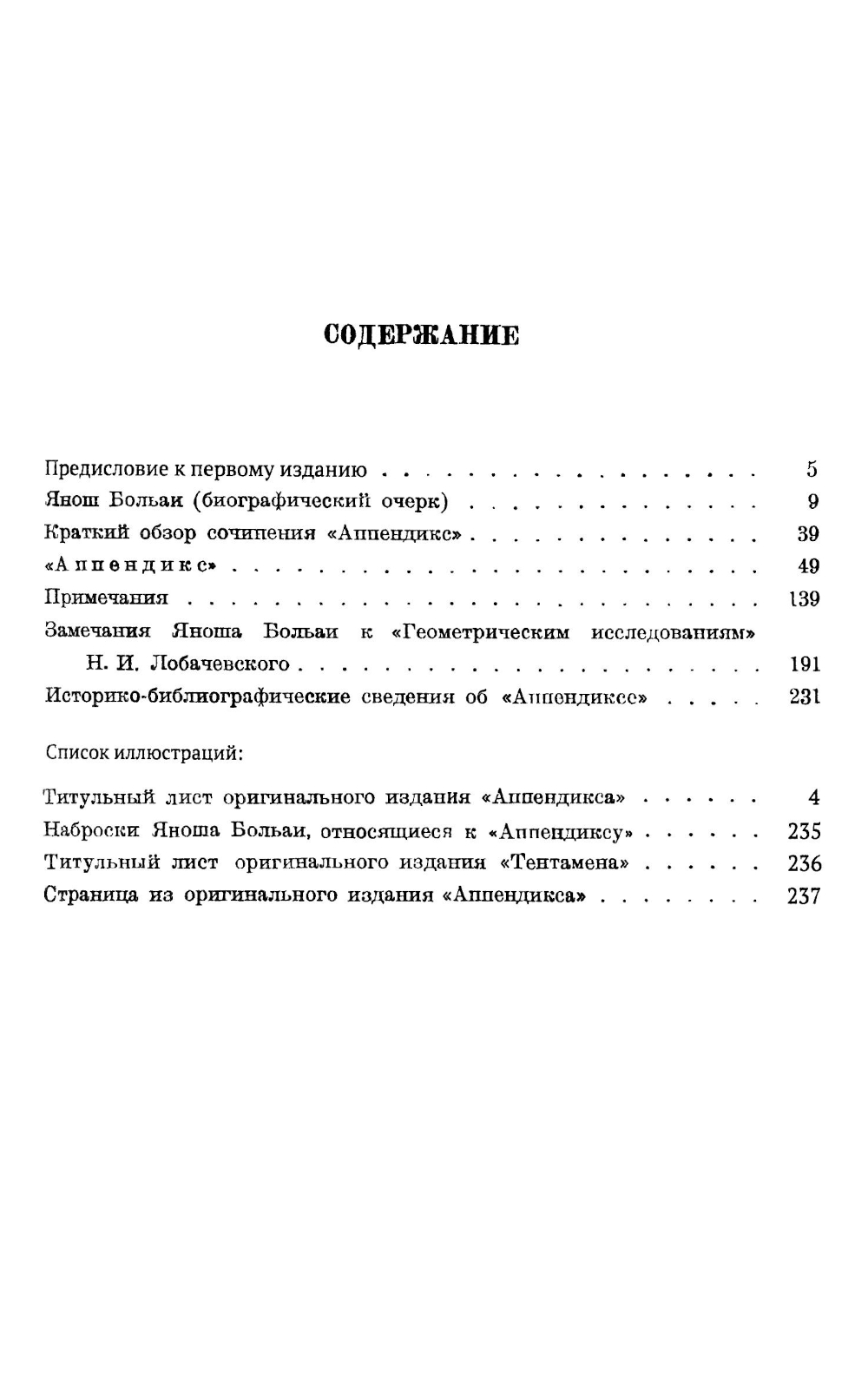 Вниманию читателей предлагается классическая работа венгерского математика Яноша Больаи, содержащая изложение основ неевклидовой геометрии. Эта книга вышла через три года после основополагающей работы Н. И. Лобачевского «О началах геометрии», где впервые было опубликовано открытие великого русского ученого. Но, тем не менее, оригинальные идеи, изложенные в «Аппендиксе», поставили это сочинение в один ряд с замечательнейшими памятниками математической литературы. Сам Янош Больаи узнал об открытии Лобачевского только через 16 лет после выхода «Аппендикса» и написал подробные «Замечания» к работе русского ученого «Геометрические исследования», которые также помещены в этой книге. Для понимания книги не требуется никаких специальных знаний. Поскольку текст изложен сжато, со множеством специальных обозначений, потребовались обширные комментарии, чтобы сделать его максимально доступным. Книга рекомендуется широкому кругу математиков и историков науки, а также всем читателям, желающим ознакомиться с жизнью и творчеством выдающегося математика, одного из первооткрывателей неевклидовой геометрии.