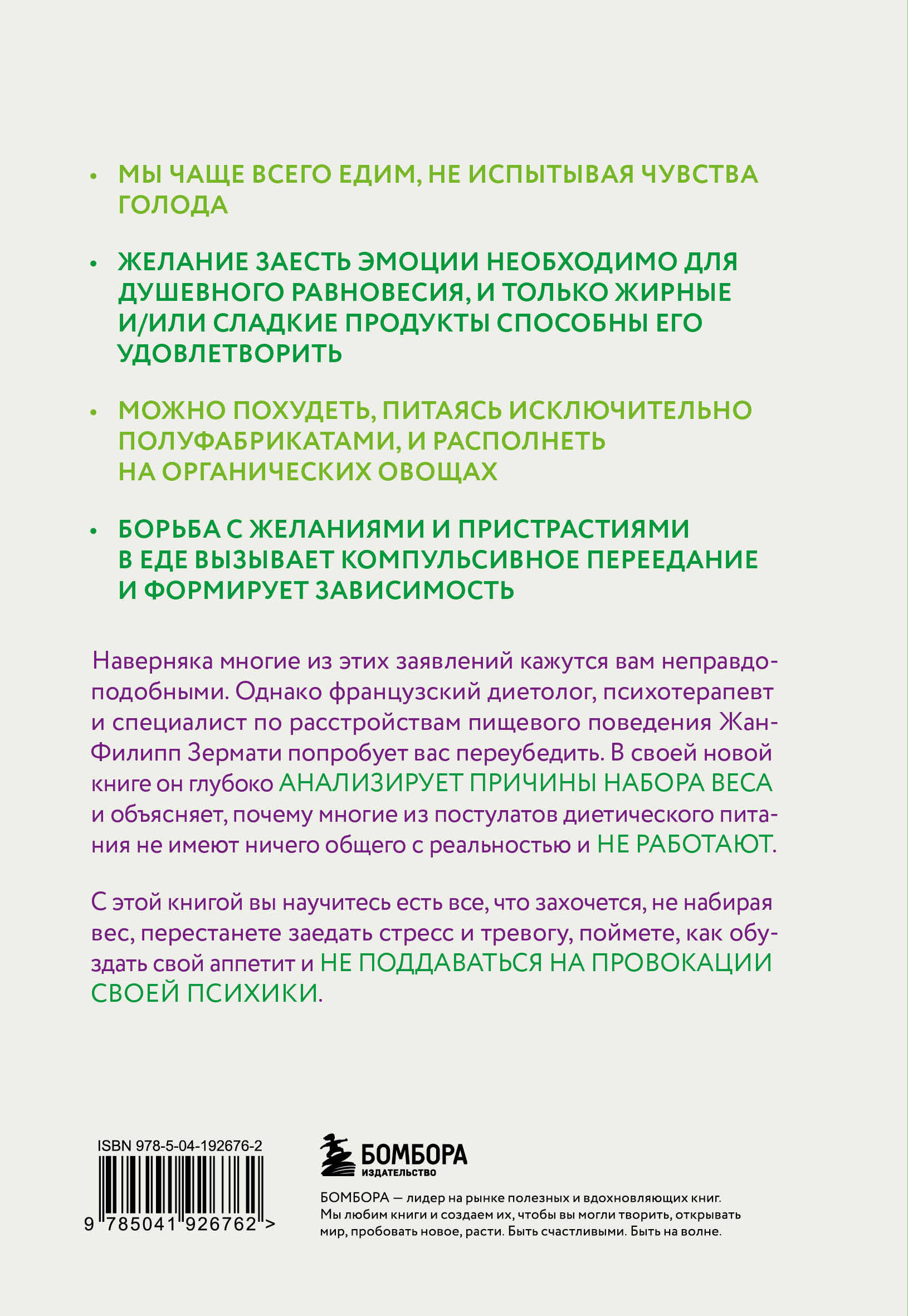 Оскар Уайльд утверждал: «Единственный способ избавиться от искушения - поддаться ему». Автор этой книги, Жан-Филипп Зермати - диетолог и специалист по расстройствам пищевого поведения, считает, что, прислушайся мы к словам классика, лишний вес перестал бы быть общемировой проблемой. Контроль, утверждает он, не принесет никаких результатов, ведь ограничивая себя и подавляя желание что-либо съесть, вы только усилите тягу к еде, что неизбежно приведет к срыву и перееданию. Из книги вы узнаете, что: - Часто мы едим, не испытывая чувство голода. - Желание заесть эмоции необходимо для душевного равновесия, и только жирные и/или сладкие продукты способны его удовлетворить. - Можно похудеть, питаясь исключительно полуфабрикатами, и располнеть на органических овощах. Каждое из этих заявлений автор обосновывает результатами многочисленных исследований и экспериментов, приводя истории пациентов из собственной многолетней практики, а также дает четкие, конкретные установки и советы, которые помогут каждому прийти к здоровому весу без ограничений и диет.| Издательство | ООО "Издательство "Эксмо" |