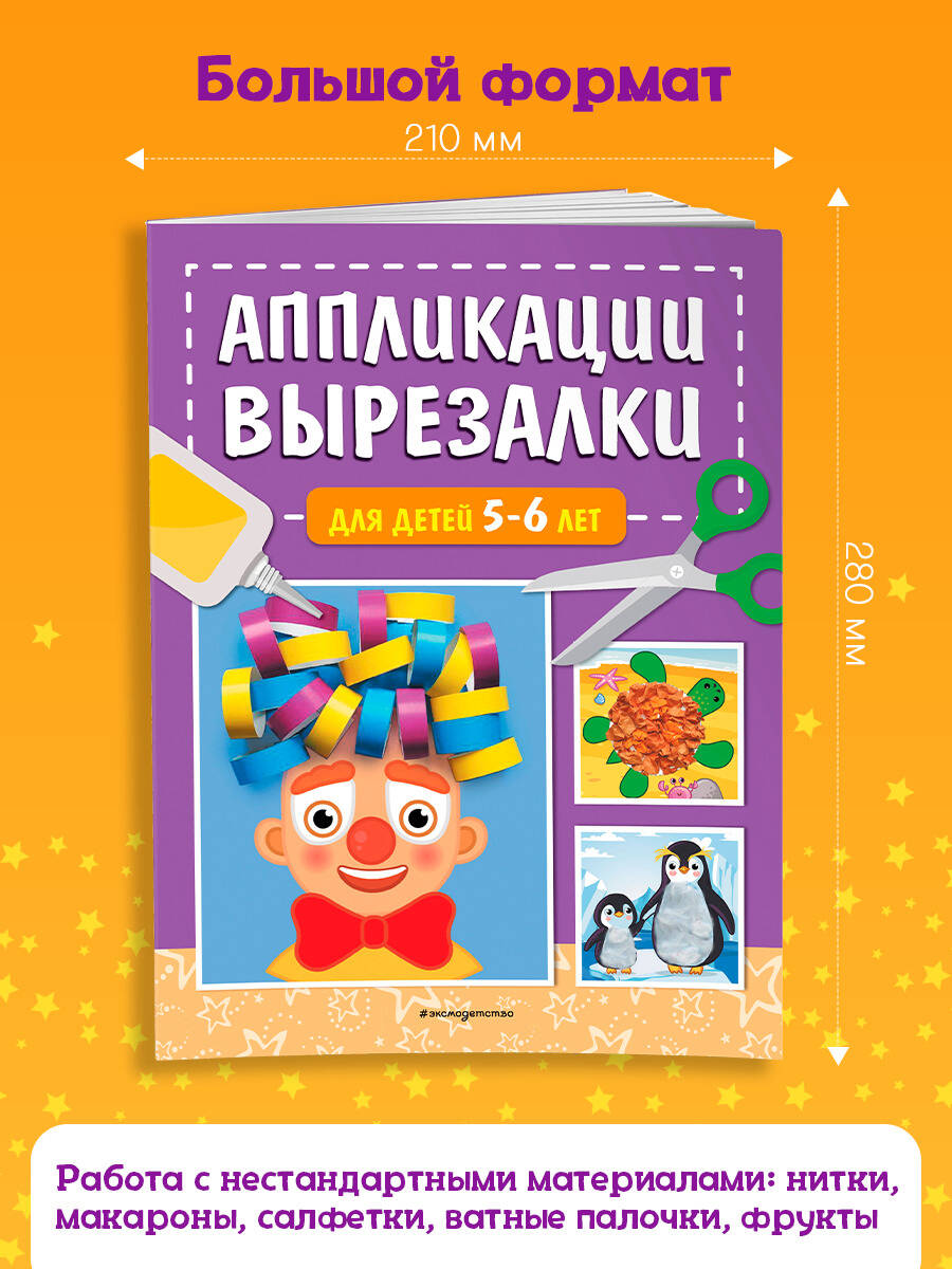 Аппликация-вырезалка поможет ребёнку развить творческие способности и станет хорошей альтернативой гаджетам. Благодаря интересным сюжетам и постепенно усложняющимся заданиям ребёнок разовьёт мелкую моторику, логическое и пространственное мышление, фантазию, внимание, воображение, подготовит руку к письму, расширит словарный запас и кругозор. Кроме того, занимаясь, ребёнок научится пользоваться ножницами и клеем. Все эти навыки помогут малышу почувствовать уверенность в своих силах, ведь ситуация успеха очень важна в обучении ребёнка. Пособие содержит заготовки для 20 творческих занятий. С помощью готовых шаблонов можно провести с малышом увлекательные занятия по классической аппликации, а также с нестандартными материалами (нитки, макароны, салфетки, ватные палочки, фрукты). Каждый шаблон содержит основу для поделки, текст задания для ребёнка, инструкцию для взрослых (что понадобится, как выполнять, на что обратить внимание малыша), а также пример выполненного задания. В конце книги ребёнка ожидает сюрприз - диплом за старание и выполнение всех заданий. Книга серии «Аппликации-вырезалки для дошколят» издательства «Эксмо» будет лучшим подарком малышу и настоящей находкой для неравнодушных родителей, которые хотят развить ребёнка и занять его полезным и интересным делом.| Издательство | ООО "Издательство "Эксмо" |