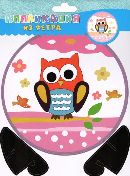 Набор для детского творчества "Аппликация из фетра" состоит из цветной картонной основы, которая высечена в виде фигурок животных, деталей из самоклеящегося фетра, декоративных глазок, картонной подставки. Размер набора 26 на 19 см. На картонной основе цветной рисунок, на который слоями необходимо приклеить элементы фетра соответсвующей формы и цвета, добавить глазки и приклеить подставку.