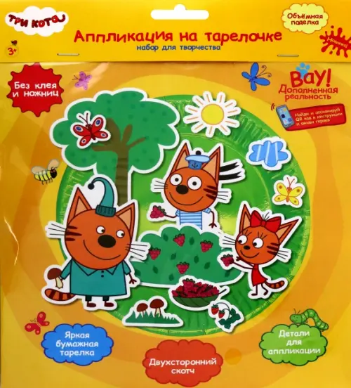 В комплекте: бумажная цветная тарелка (18 см), бумажные заготовки для аппликации (1 лист), двухсторонний скотч.