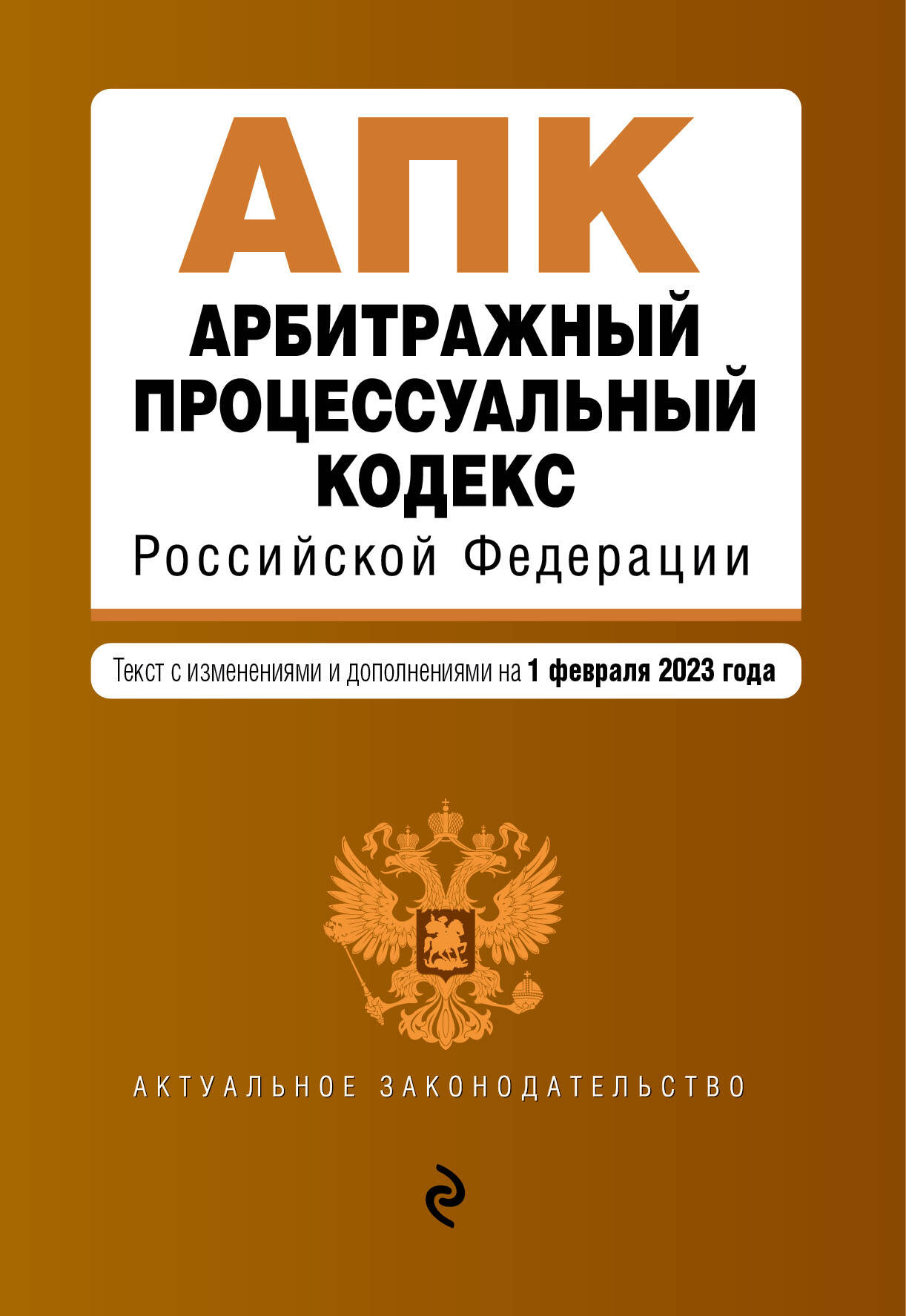 Настоящее издание содержит текст Арбитражного процессуального кодекса Российской Федерации, актуальный на 1 февраля 2023 года, с удобной навигацией. Если на момент подготовки издания есть изменения, вступающие в силу позднее, то вместе с редакцией нормы, действующей на эту дату, приводится норма в новой редакции и указывается дата, с которой она вступает в силу.| Издательство | ООО "Издательство "Эксмо" |
