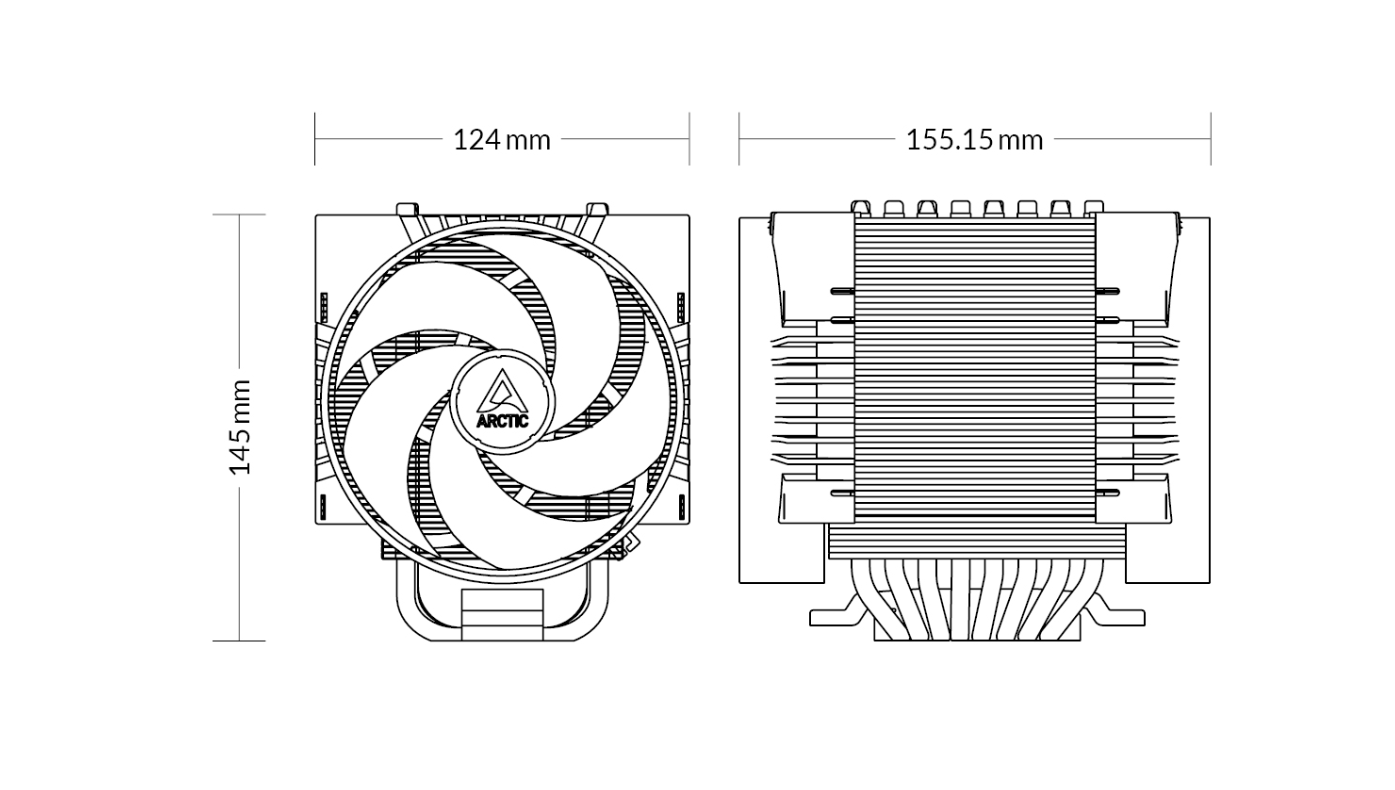- Размеры: 124 (Д) x 156 (Ш) x 145 (В) мм