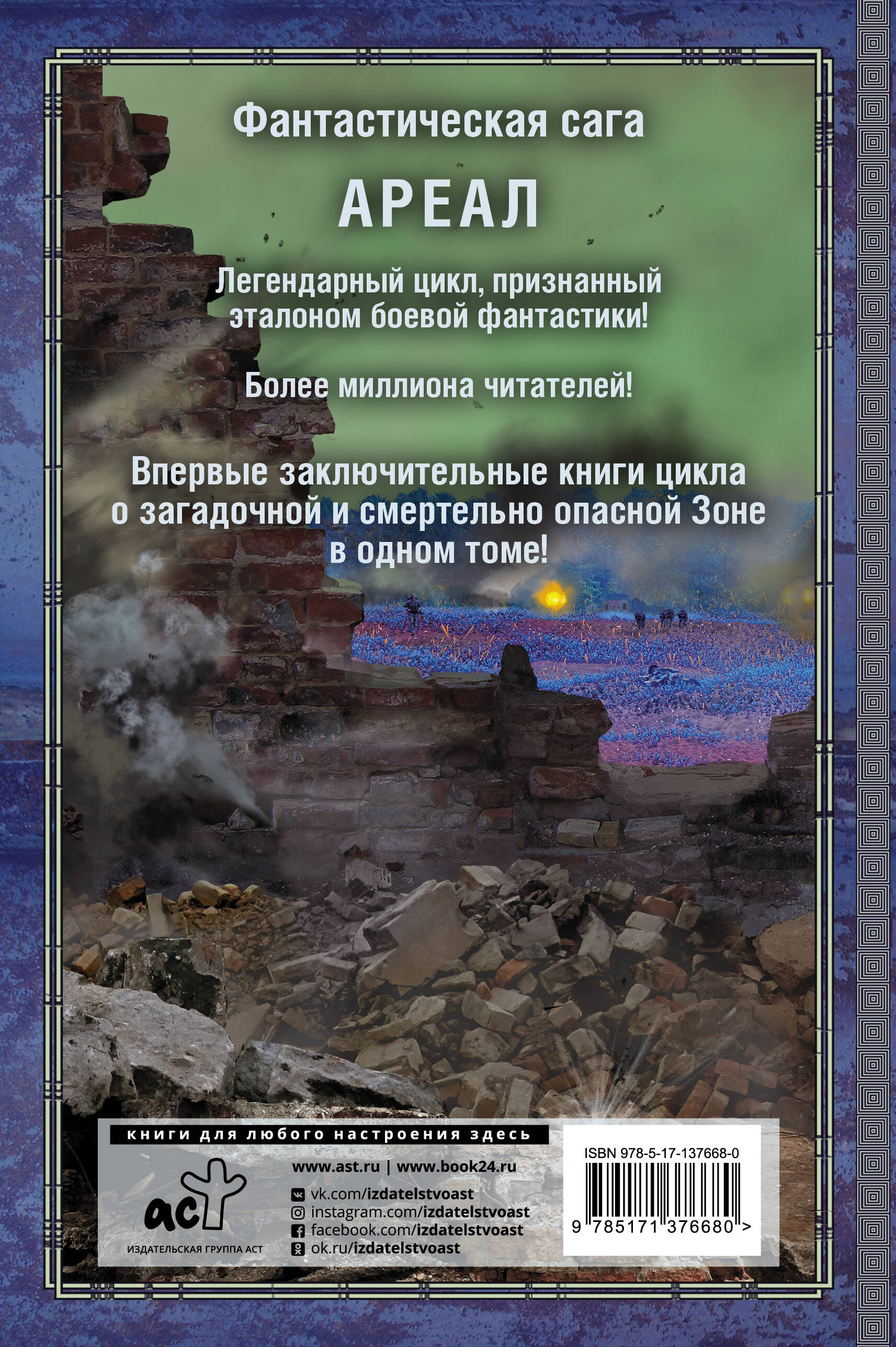Ареал неумолимо расширяет Зону поражения в ответ на "ядерную агрессию" правительства страны. Надежды на ремутацию Ареала нет. Жители по-прежнему вынуждены день и ночь добывать нефть "Тип Икс", чтобы не умереть с голоду в жестокой криминальной среде. Только отряд майора Плетнёва как всегда стоит на защите интересов обычных людей. Воздастся ли каждому по заслугам его? И раскроет ли Ареал все свои тайны? В настоящий сборник вошли заключительные книги цикла: "Один в поле не воин" и "Что посеешь".| Издательство | ИЗДАТЕЛЬСТВО "АСТ" |