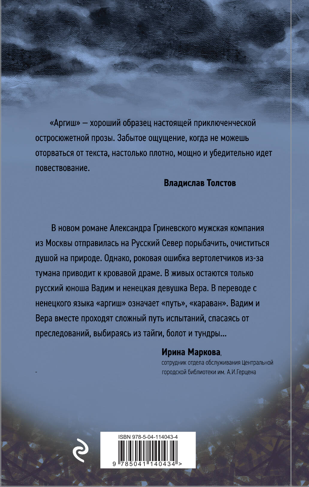 Повесть Александра Гриневского «Аргиш» дополняет и развивает традицию «робинзонады» в новейшей истории отечественной литературы. Четверо туристов решили увлекательно провести отпуск - заброситься на вертолете на знакомую речку, сплавиться на резиновых лодках. А был туман, дождь, летчики всё напутали, - и теперь вместо знакомых речных берегов перед ошеломленными мужиками расстилаются каменистые пустоши с редкими проплешинами мха. Даже непонятно, куда именно их забросили, - мобильная связь, разумеется, отсутствует, по карте ничего не поймешь. Разумные советуют сидеть и ждать помощи, нетерпеливые гонят вперед - надо идти к реке. На третий день они выйдут к реке, развернут лодки и начнут сплавляться... Повесть стоит в одном ряду с романом Ильи Бояшова «Бансу», романом Александра Бушковского «Рымба» и романом Анны Козловой «Рюрик».| Издательство | ООО "Издательство "Эксмо" |