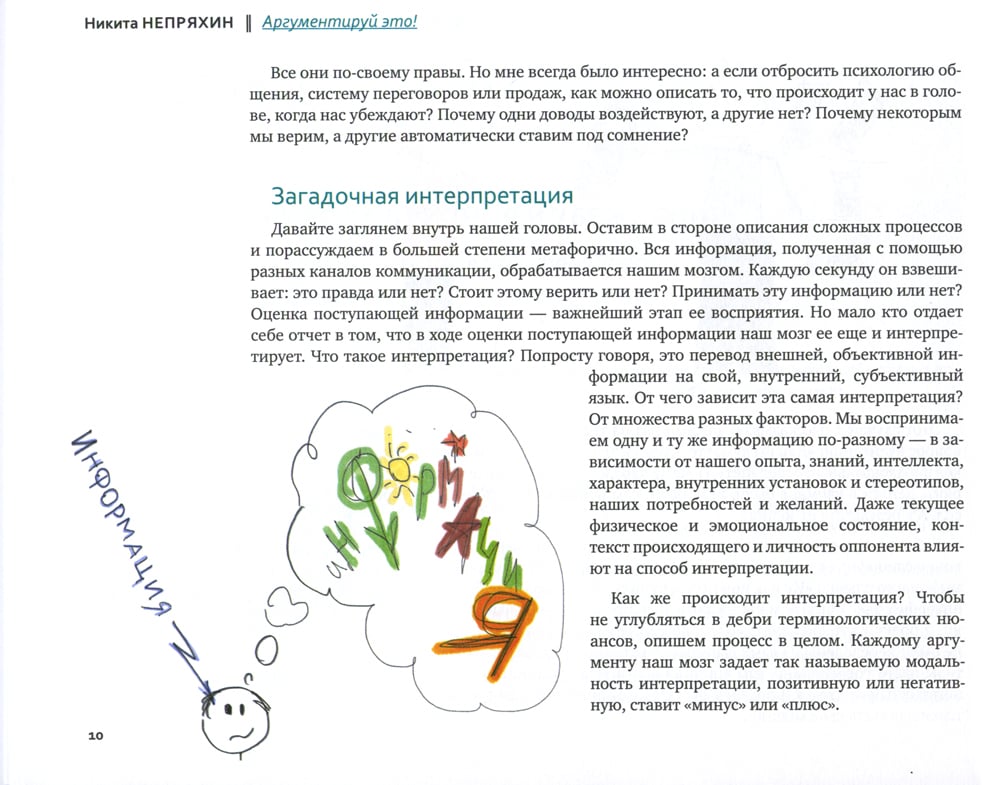 Каждый день независимо от нашей сферы деятельности нам приходится убеждать других в своей правоте. Мы участвуем в переговорах, выступаем публично, проводим совещания или презентации, защищаем проекты и дипломы, устраиваемся на работу, ведем диалоги о повышении зарплаты или продвижении по карьерной лестнице, спорим и полемизируем и дома, и на рабочем месте. Но порой в самый переломный момент в жизни мы не можем найти нужный аргумент, подобрать правильные доводы в защиту своей идеи, достучаться до оппонента, и все наши планы, а иногда и жизнь - рушатся. Существует ли какая-то универсальная система убеждения? Как подбирать правильные и убедительные доводы? Какие аргументы действуют и почему? За счет чего одним удается доказывать свою точку зрения, а другим нет? Что на самом деле важно при убеждении? Никита Непряхин, известный бизнес-тренер, автор многих книг по ораторскому мастерству, основатель тренинговой компании Business Speech, считает, что научиться убедительно говорить и аргументированно отстаивать свою позицию можно и нужно! Он раскроет все секреты эффективной аргументации в своей новой книге. Читайте, учитесь и убеждайте.| Издательство | Альпина Паблишер |