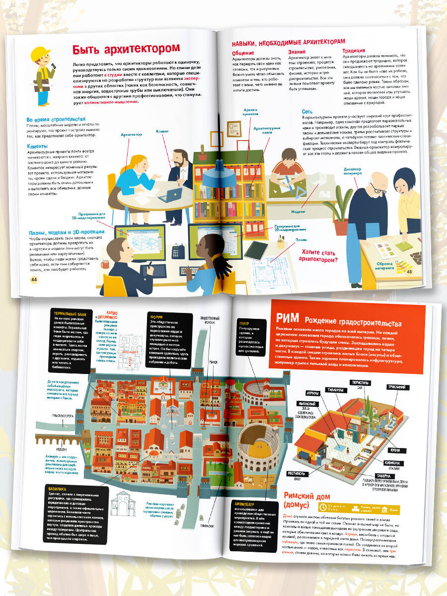 Египетские пирамиды, удивительные соборы и дворцы, высочайшие небоскрёбы - все эти здания когда-то были лишь идеей в голове архитектора. Книга "Архитектура" расскажет, как строятся здания по всему миру. В книге подробно описывается множество уникальных зданий, их особенности и процесс создания. Вы узнаете, как строились дома в Японии, прочтёте, как создавался знаменитый собор Саграда Фамилия, как разрабатывались удивительные сооружения, такие, как дом над водопадом. Яркие детальные иллюстрации, а также интересные факты позволят вам понять, как работают архитекторы, и даже представить удивительные здания будущего. Для среднего школьного возраста.| Издательство | Издательство "АСТ" |