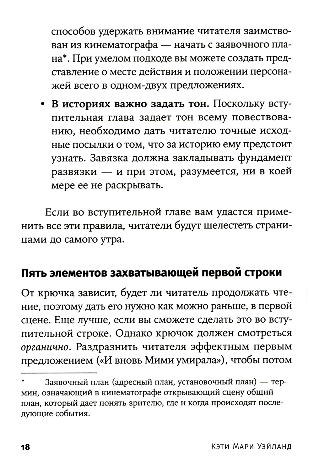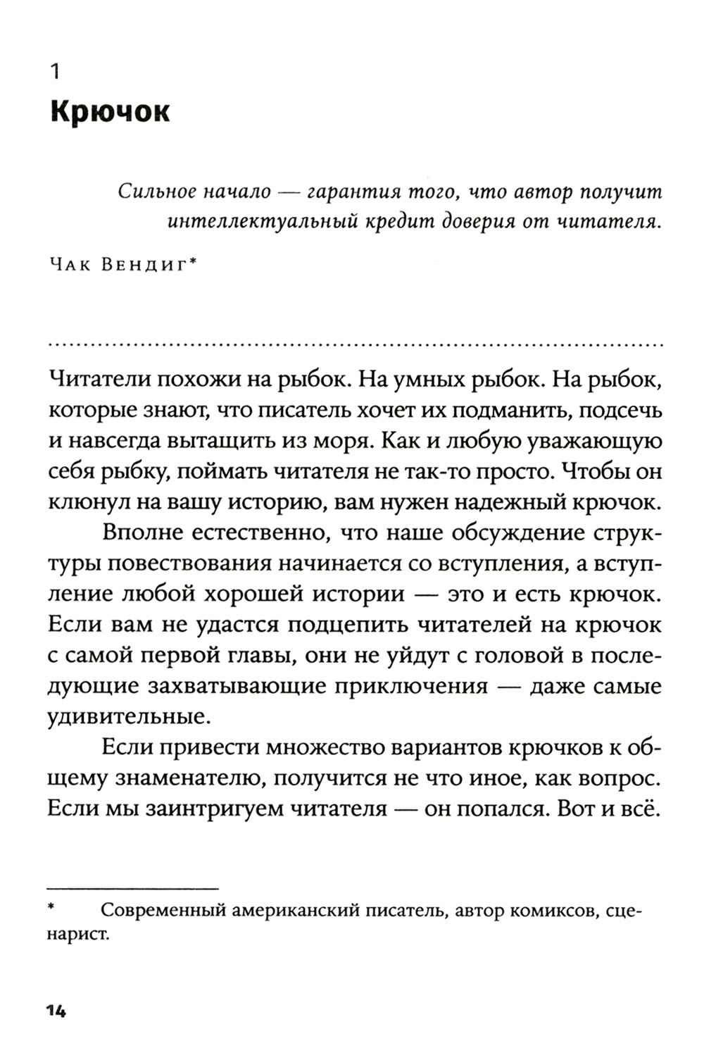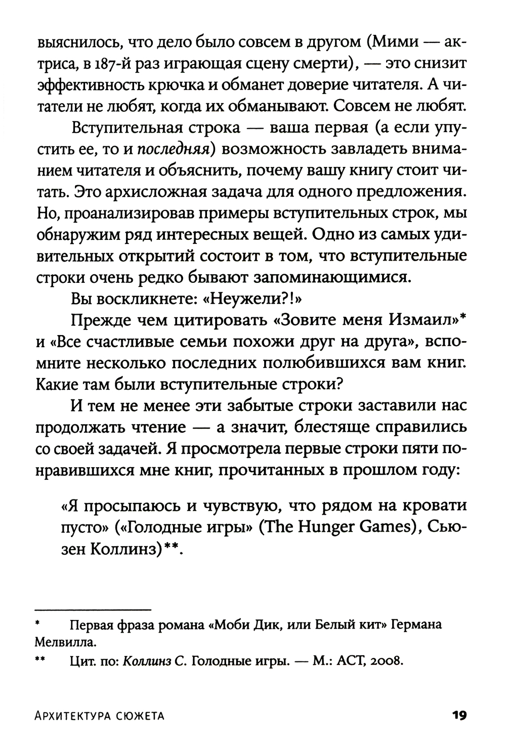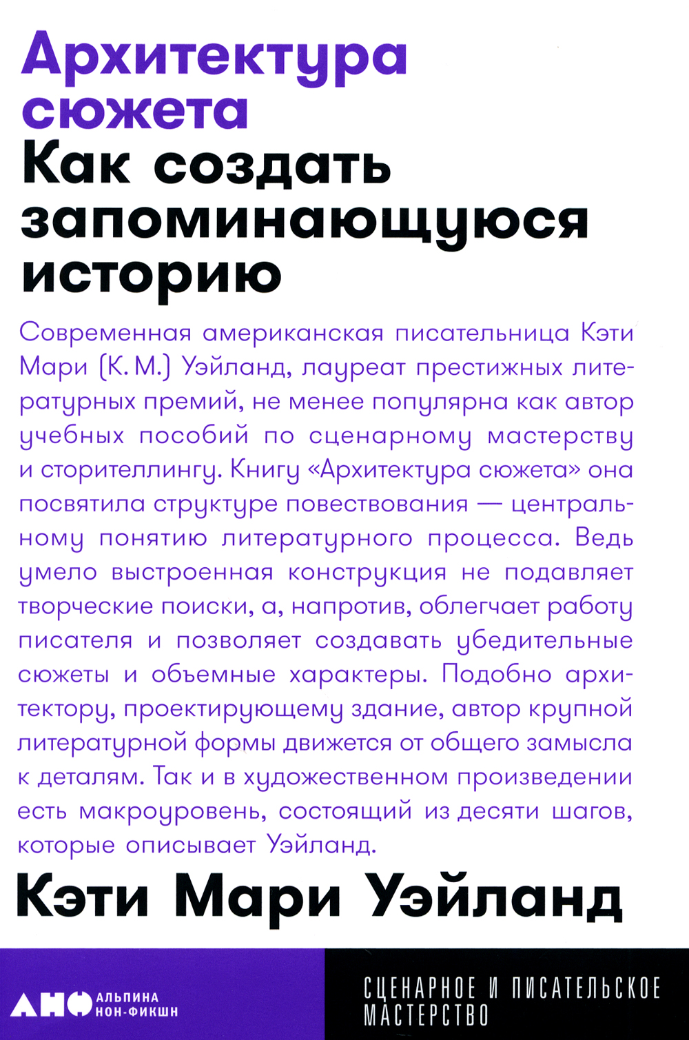 Современная американская писательница Кэти Мари (К.М.) Уэйланд, лауреат престижных литературных премий, не менее популярна как автор учебных пособий по сценарному мастерству и сторителлингу. Книгу «Архитектура сюжета» она посвятила структуре повествования - центральному понятию литературного процесса. Ведь умело выстроенная конструкция не подавляет творческие поиски, а, напротив, облегчает работу писателя и позволяет создавать убедительные сюжеты и объемные характеры. Подобно архитектору, проектирующему здание, автор крупной литературной формы движется от общего замысла к деталям. Так и в художественном произведении есть макроуровень, состоящий из десяти шагов, которые описывает Уэйланд. Далее автор последовательно останавливается на структуре сцены и предложения. Книга адресована авторам как художественной прозы, так и сценариев для кино и телевидения, но принесет несомненную пользу всем читателям, причастным к работе над самыми разными текстами.| Издательство | Альпина нон-фикшн |