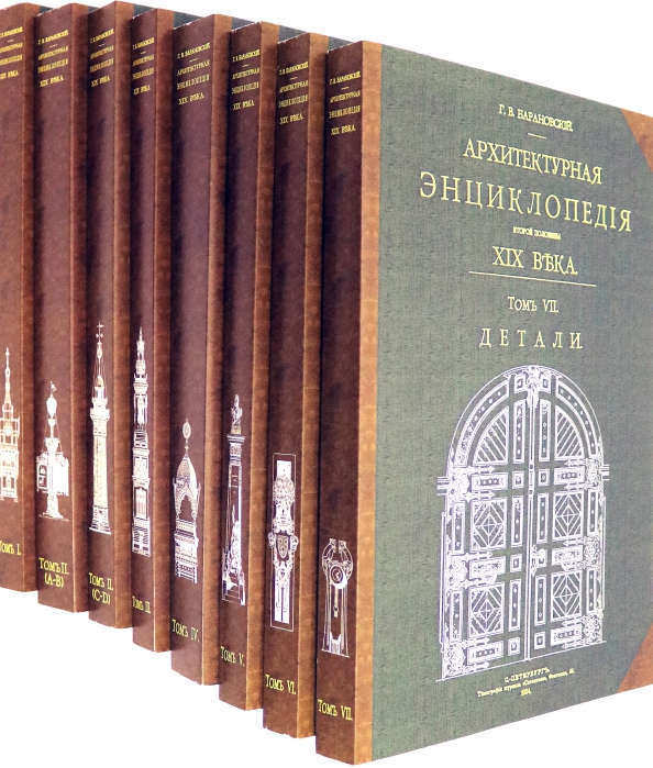 Репринт с издания. СПб. 1902-1908. В издание включены лучшие на тот период времени образцы художественно-архитектурного творчества мастеров всего мира. В энциклопедию включены графические таблицы с подробными изображениями фасадов зданий, их фрагментов; планы, различные проекции, перспективы, разрезы и пр. , иллюстрирующие все богатство мировой культуры, явленное в самых различных темах и сюжетах, где архитектура и зодчество, так или иначе, проявляют себя. Ничего подобного ни до, ни после этого издания не было ни в России, ни в мире. Богатство и количество представленного на страницах томов материала позволяет архитекторам, художникам, застройщикам, а также всем, кто интересуется архитектурой, найти ответы на интересующие вопросы, получить необходимые идеи для дальнейшего творчества. Содержание: Том 1. Архитектура исповеданий (церкви, мечети, часовни, надгробия и др. ). В первый том энциклопедии вошли сведения об архитектуре исповеданий. Том 2. Книга 1, 2. Общественные здания. Во второй том книгу первую и вторую энциклопедии вошли сведения об общественных зданиях. Том 3. Выставки, зрелища, спорт. В третий том энциклопедии вошли сведения об архитекруных сооружениях, предназначенных для выставок, зрелищ и спорта. Том 4. Жилища и службы. В четвертый том энциклопедии вошли сведения о жилищах и службах. Том 5. Улицы, площади, парки. В пятый том энциклопедии вошли сведения об улицах, площадях и парках. Том 6. Части сооружений (фасады, подъезды, балконы, лестницы и др. ). В шестой том энциклопедии вошли сведения частях сооружений (фасадах, подъездах, балконах, лестницах и др. ). Том 7. Архитектурные и скульптурные детали. В седьмой том энциклопедии вошли сведения об архитектурных и скульптурных деталях. В каждом томе около 2000 илл. Тираж 30 экз. выполнен по технологии print-on-demand.