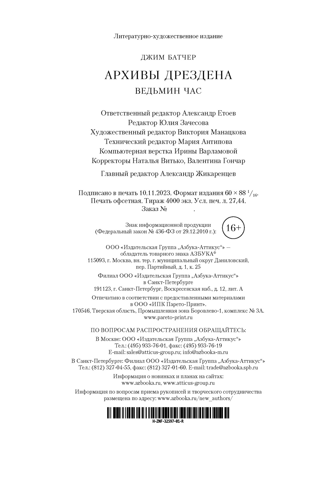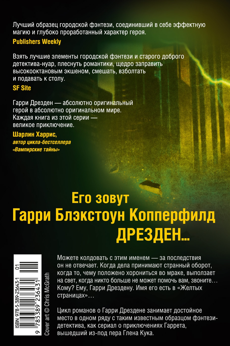 Его зовут Гарри Блэкстоун Копперфилд Дрезден. Можете колдовать с этим именем - за последствия он не отвечает. Когда дела принимают странный оборот, когда то, чему положено хорониться во мраке, выползает на свет, когда никто больше не может помочь вам, звоните... Кому? Ему, Гарри Дрездену. Имя его есть в «Желтых cтраницах»… Нет, это невероятно! Вроде бы все готовы мирно разрешить разногласия и подтвердить свое участие в Неписаном договоре - и старейшины Белого Совета, и Белая Коллегия вампиров, и свартальвы, и вурдалаки, и даже некоронованный подпольный король Чикаго «джентльмен» Джонни Марконе - и вдруг… В замок, где назначена встреча всех участников намеченной встречи, прибывает последняя из титанов, Этне, владелица самого сокрушительного оружия, которое есть на свете, и объявляет: «Если до ведьмина часа каждый из здесь присутствующих не сделает выбор: отринуть смертный мир или сгореть вместе с ним, - то мир смертных будет разрушен». Гарри Дрезден! Слышишь? Сделай хоть что-нибудь!| Издательство | Азбука |
