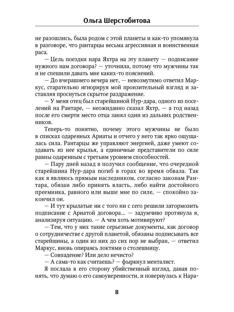 Вы верите во всепоглощающую любовь? В ту, что вспыхивает, словно молния, не оставляя выбора? В ту, что не спрашивает «Когда?» и «Почему?», а властно заявляет: «Ты мне принадлежишь. Теперь и навсегда»... У ариатов, наделенных сверхспособностями, иная любовь невозможна. Они не ищут - они узнают. По одной лишь искре во взгляде. По первому прикосновению. По невероятному притяжению. И когда две половинки находят друг друга, ни время, ни пространство, ни силы Вселенной уже не смогут им помешать быть вместе. Потому что настоящая любовь, как свет далеких звезд, сияет даже в самой непроглядной тьме.| Издательство | Т8 RUGRAM |