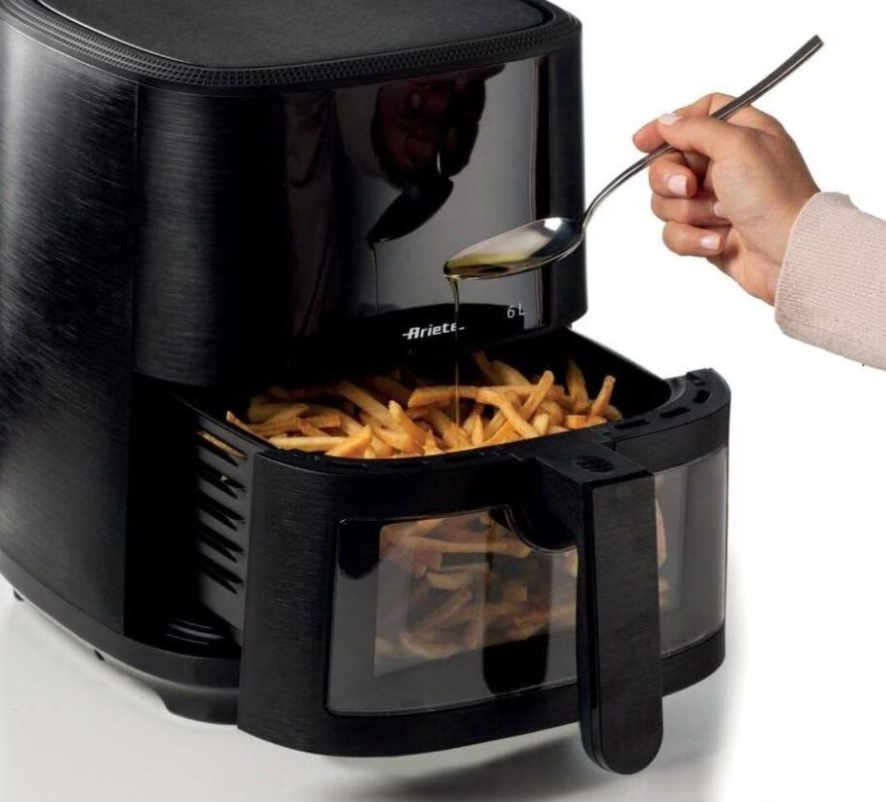 * Благодаря большой съемной корзине объемом 6 л вы можете приготовить до 2,5 кг картофельной соломки за один прием с помощью "Воздушной фритюрницы Ariete 6L"!