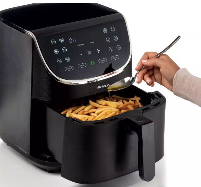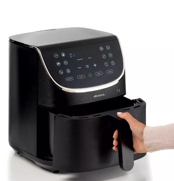 С помощью аэрофритюрницы Airy Fryer 7L вы сможете обжаривать любые продукты в больших количествах, используя всего лишь ложку масла, делая жареную пищу одновременно полезной и вкусной. Используя большую корзину во фритюрнице Ariete's Airy Fryer 7L, вы сможете приготовить до 2,8 кг картофельной соломки за один прием! Не только картофельная соломка - также крокеты, рыбные, мясные и многие другие блюда в панировке, как замороженные и готовые к запеканию, так и свежие, только что обваленные в сухарях - это возможно с помощью двенадцати предустановленных программ.