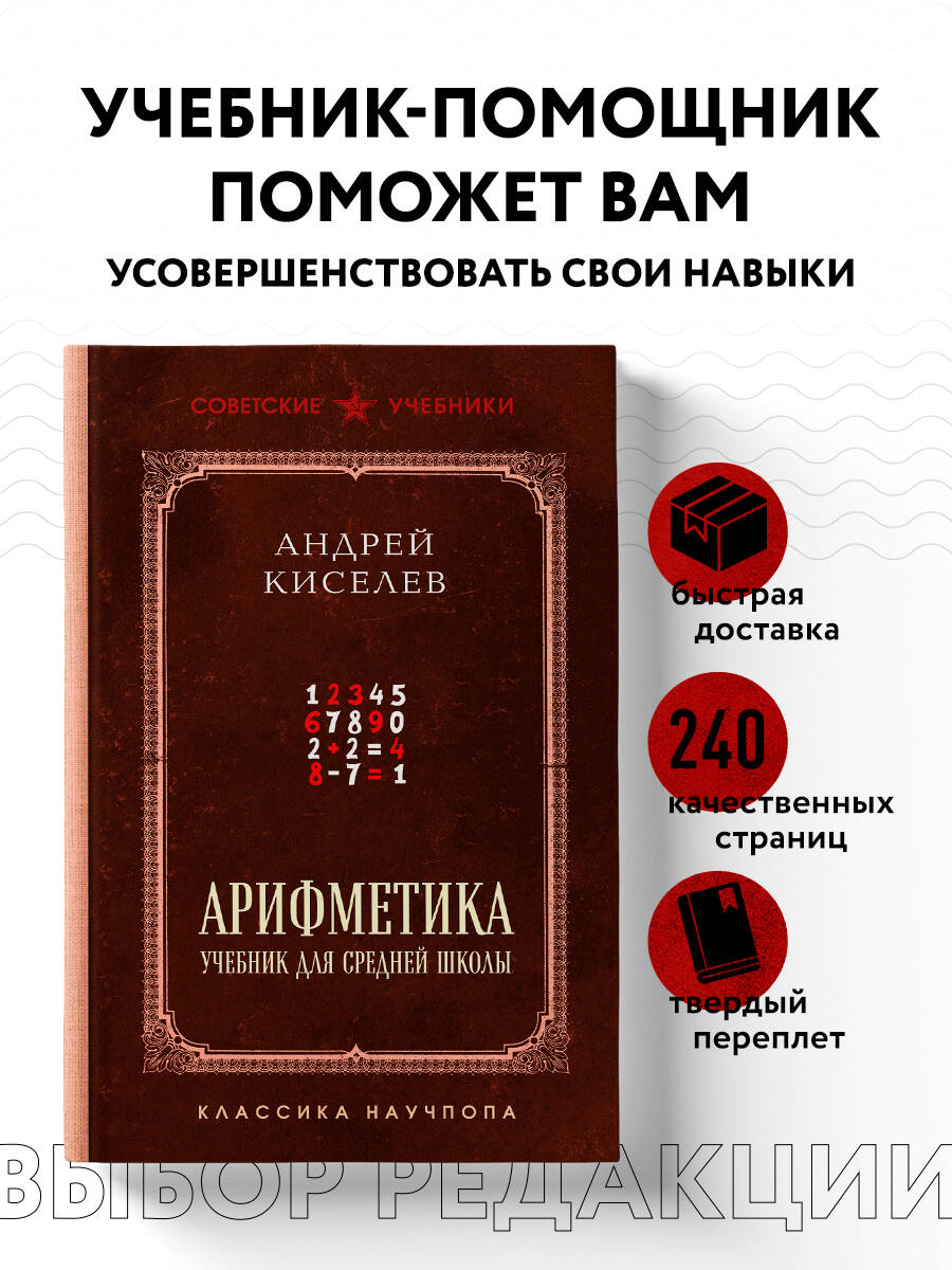 Учебник «Арифметика» авторства Киселева - ваш надежный путь к совершенству в математике. Откройте для себя мир чисел с учебником «Арифметика» от опытного педагога Киселева. Этот учебник создан для средних классов, а также для всех, кто хочет укрепить свои базовые математические навыки. В учебнике: - Понятное изложение материала. - Практические задания. - Интерактивные элементы. - Структурированность. Вы получите: - Глубокое понимание основных арифметических операций. - Уверенность в решении математических задач. - Развитие аналитических способностей и внимательности. - Подготовку к экзаменам и контрольным работам. Учебник «Арифметика» от Киселева - это не просто книга, а ваш надежный помощник на пути к математическому успеху.| Издательство | ООО "Издательство "Эксмо" |