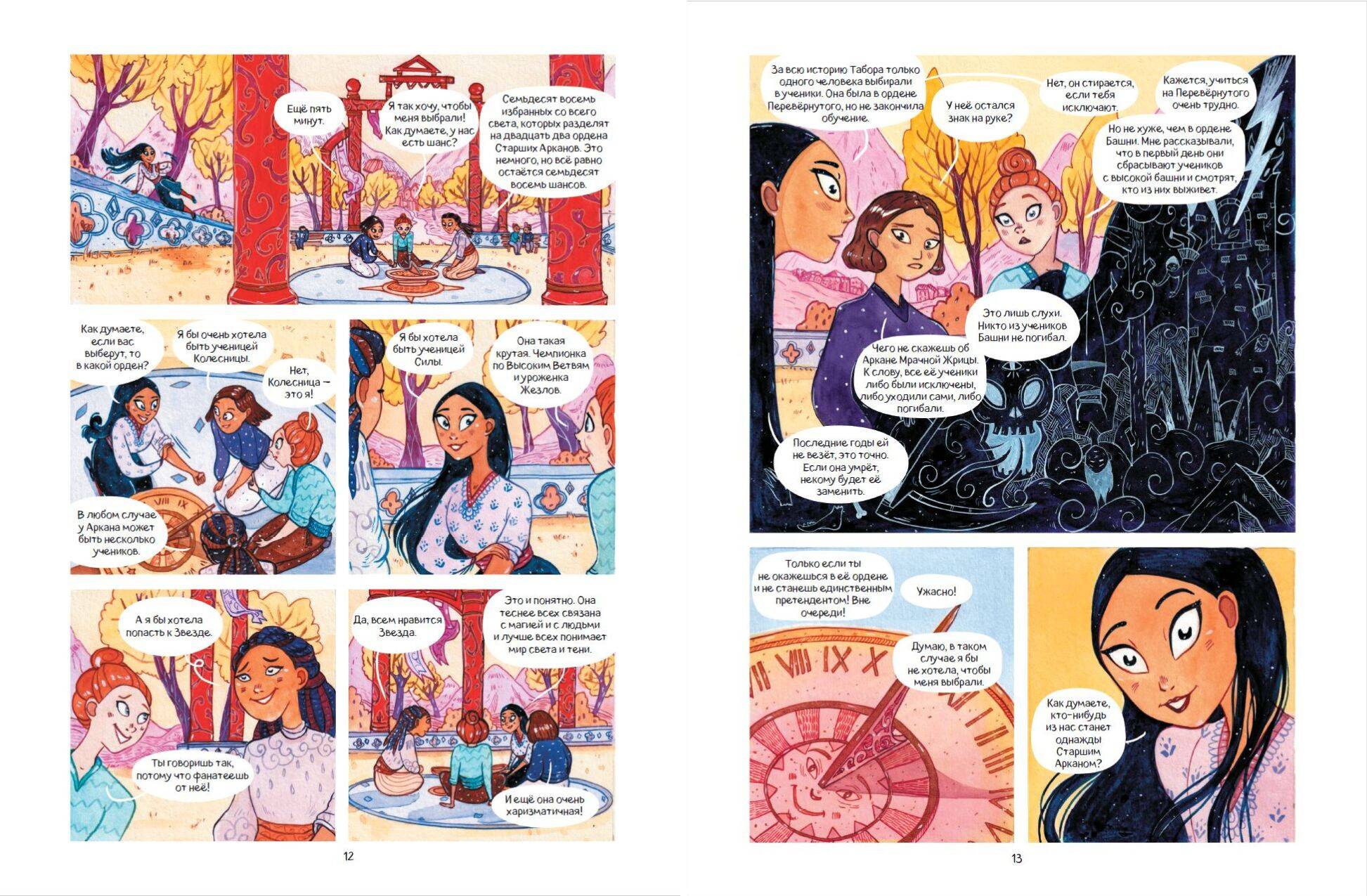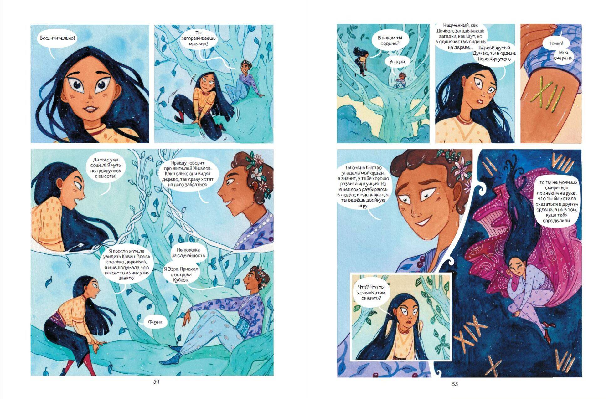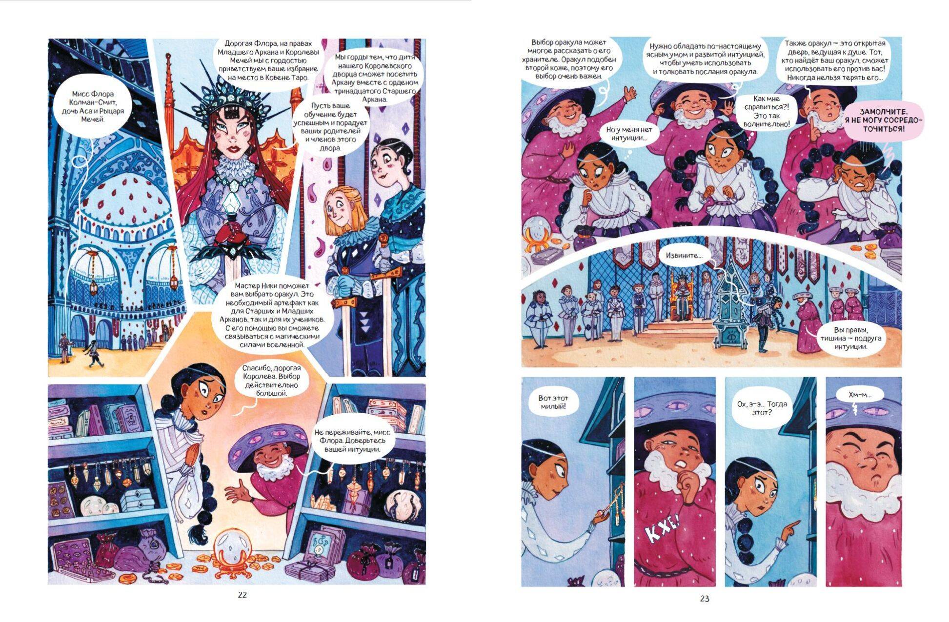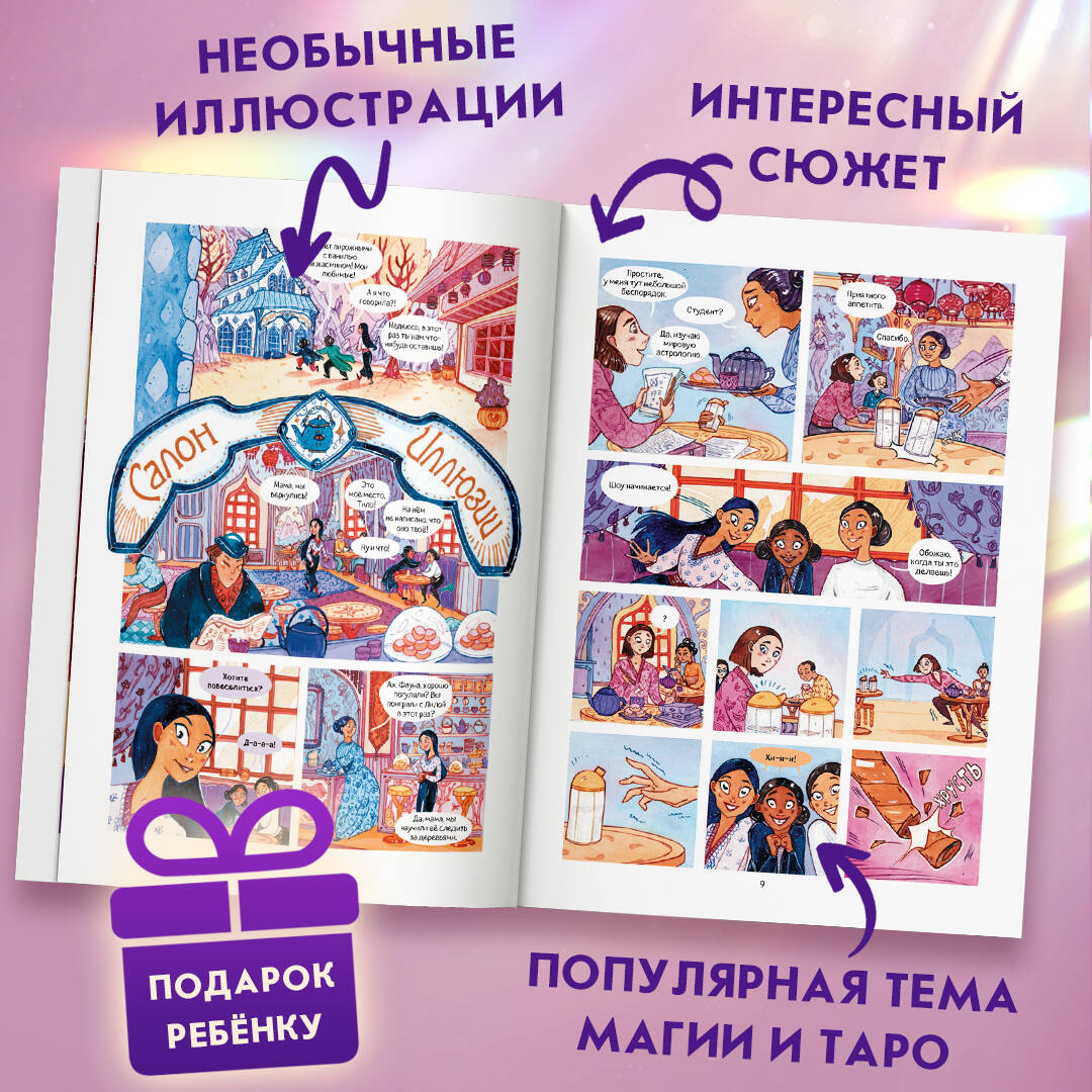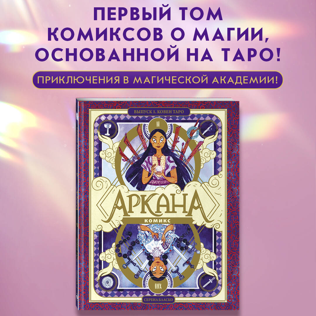 Первый том атмосферного комикса о близняшках Флоре и Фауне, живущих в волшебном мире Таро! Узнай историю Старших Арканов, ставших людьми, и окунись в мир карт, рун, камней и шаров предсказаний! Родные сёстры живут в разных семьях и ничего не знают друг о друге. Фауна мечтает пробудить волшебные способности, Флора же всячески избегает магии Таро. Каждый год избранные дети отправляются на остров Аркана, чтобы обучаться и развивать свой дар. Волею судьбы обе близняшки попадают туда. Однако сёстрам предстоит пройти нелёгкий путь, ведь когда они оказываются вместе, начинает сбываться страшное пророчество... Издание с завораживающей красоты обложкой, украшенной золотой фольгой и глянцевыми переливами, станет идеальным подарком для юных фанатов Таро и магии, а также поклонников комиксов и жанра фэнтези. Комикс содержит четыре астрологических теста - узнай, какой ты персонаж!| Издательство | ООО "Издательство "Эксмо" |