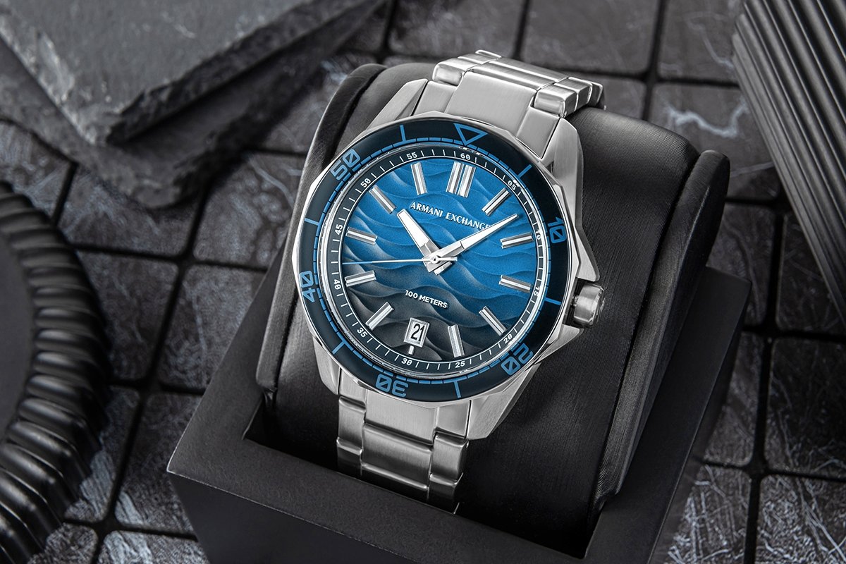 Часы мужские Armani Exchange Spencer AX1950 Часы мужские Armani Exchange Spencer AX1950 - это сочетание элегантности и современного, городского стиля. Выразительный дизайн с синим циферблатом и стальным браслетом привлекает внимание и подчеркивает уверенность в себе. Часы прекрасно сочетают в себе классический характер с оттенком спортивной динамики, что делает их подходящими как для повседневного стиля, так и для более официальных случаев. Солидное качество изготовления и внимание к деталям делают модель Spencer AX1950 символом современной мужественности - простой, элегантной и стильной. Это выбор для мужчин, которые ценят стиль, функциональность и неподвластный времени внешний вид бренда Armani Exchange. Описание продукта:
