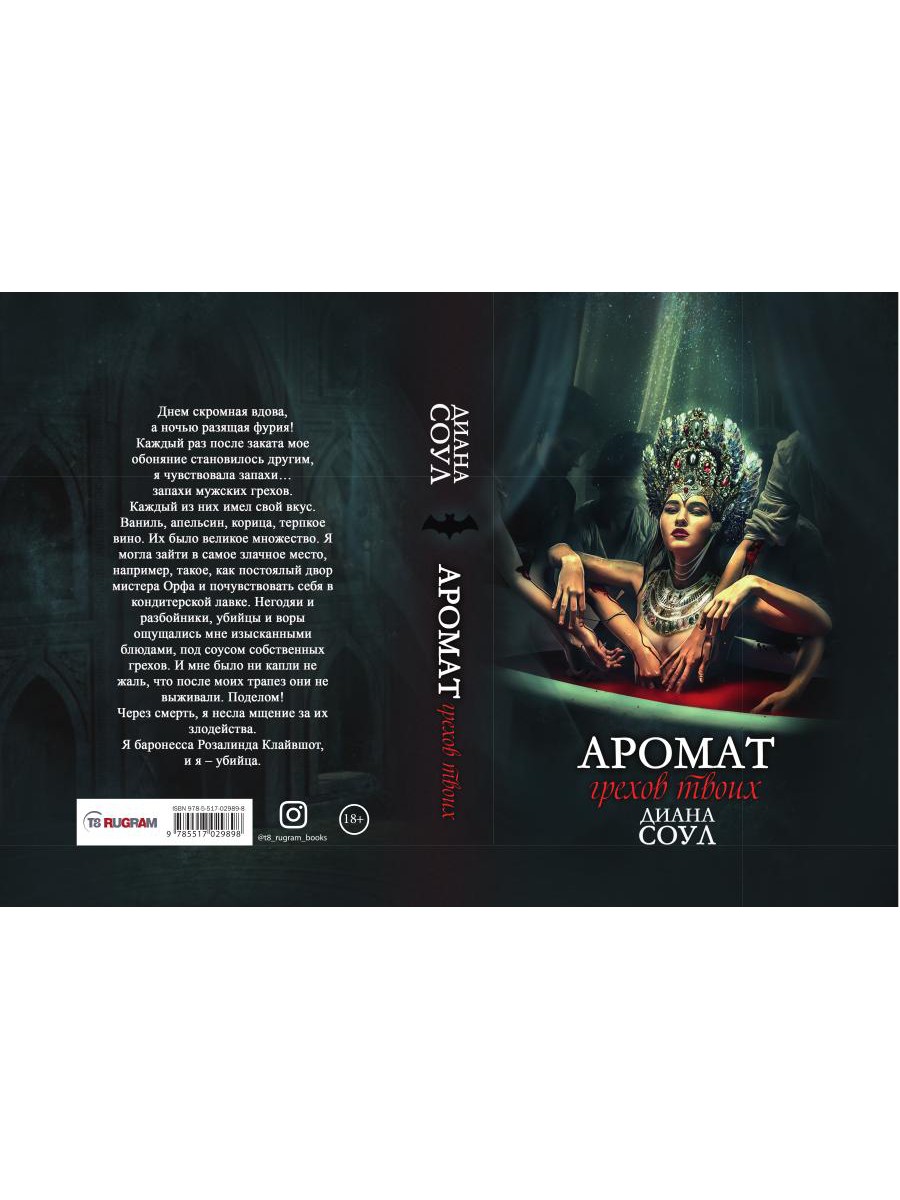 Днём скромная вдова, а ночью разящая фурия! Каждый раз после заката мое обоняние становилось другим, я чувствовала запахи... запахи мужских грехов. Каждый из них имел свой вкус. Ваниль, апельсин, корица, терпкое вино. Их было великое множество. Я могла зайти в самое злачное место, например, такое, как постоялый двор мистера Орфа и почувствовать себя в кондитерской лавке. Негодяи и разбойники, убийцы и воры ощущались мне изысканными блюдами, под соусом собственных грехов. И мне было ни капли не жаль, что после моих трапез они не выживали. Поделом! Через смерть, я несла мщение за их злодейства. Я баронесса Розалинда Клайвшот, и я - убийца.| Издательство | Т8 RUGRAM |