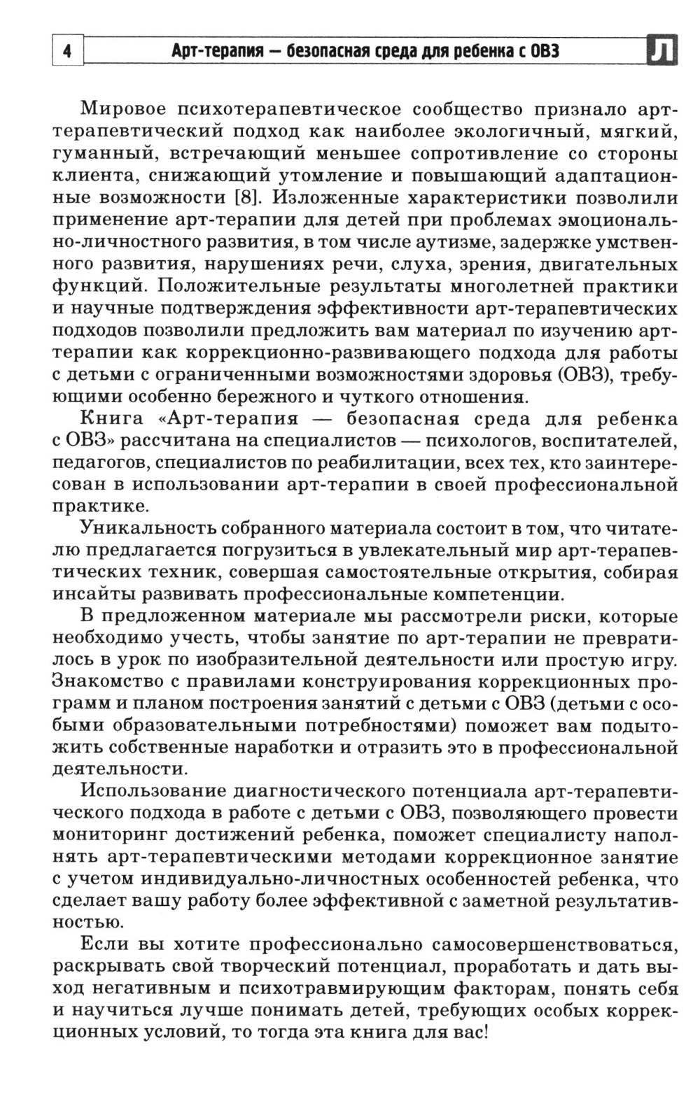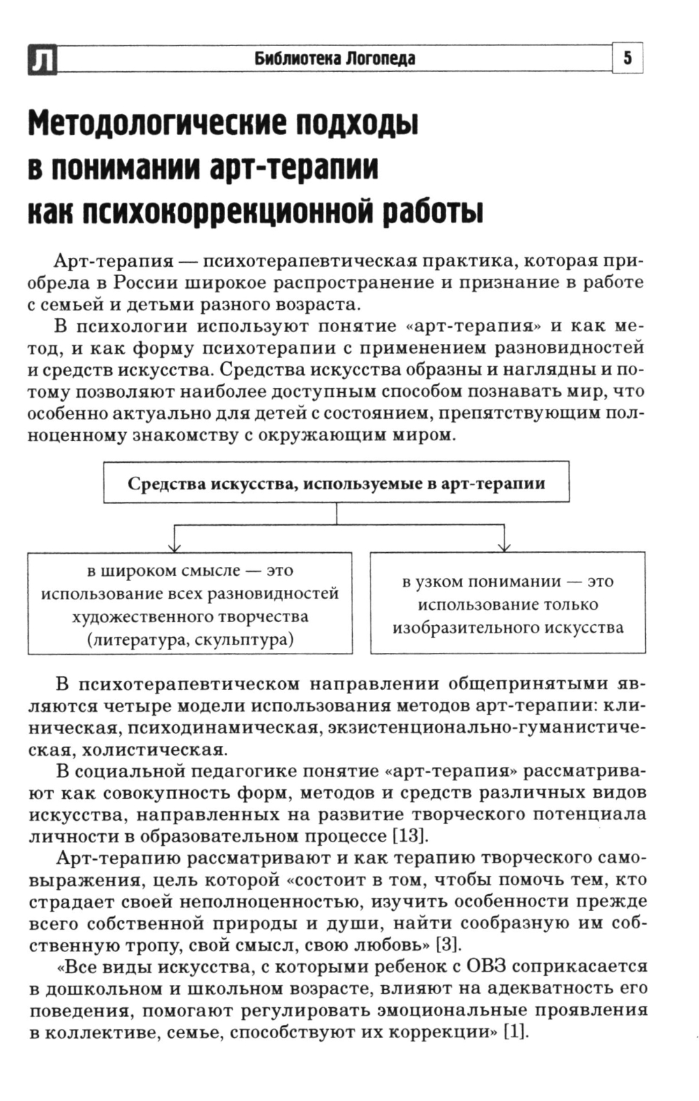 В книге анализируется использование различных арт-терапевтических направлений для работы с детьми c учетом их особенностей. Данное пособие разработано на основе многолетней практики клинического психолога, занимающегося изучением влияния отдельных направлений арт-терапии как коррекционного и терапевтического метода. Главное внимание обращается на отдельные подходы использования арт-терапевтических практик исходя из нозологического состояния ребенка. В книге представлено описание моделей терапевтических и коррекционных подходов в различных арт-направлениях, даны упражнения и примеры из практики, отмечаются особенности проведения конструкта занятий, подчеркиваются проблемные области и их профилактика при работе с детьми с ОВЗ. Данное пособие является настольным инструментом для практикующих психологов, социальных работников, специалистов развивающих детских центров. Книга также рекомендована и педагогам образовательных организаций.| Издательство | Творческий центр Сфера |