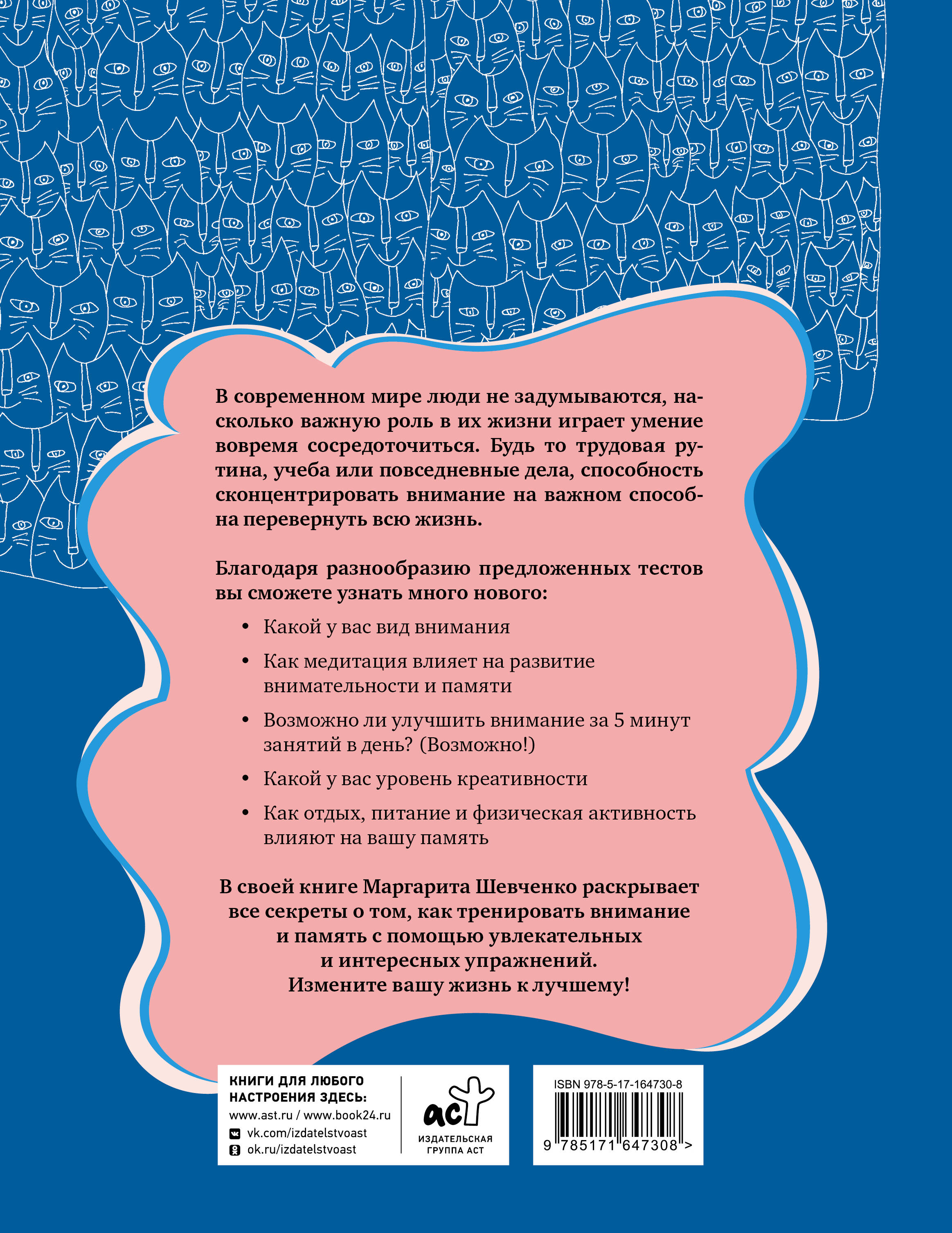В современном мире люди не задумываются, насколько важную роль в их жизни играет умение вовремя сосредоточиться. Будь то трудовая рутина, учеба или повседневные дела, способность сконцентрировать внимание на важном способна перевернуть всю жизнь. Благодаря разнообразию предложенных тестов вы сможете узнать много нового: • Какой у вас вид внимания • Как медитация влияет на развитие внимательности и памяти • Возможно ли улучшить внимание за 5 минут занятий в день? (Возможно!) • Какой у вас уровень креативности • Как отдых, питание и физическая активность влияют на вашу память В своей книге Маргарита Шевченко раскрывает все секреты о том, как тренировать внимание и память с помощью увлекательных и интересных упражнений. Измените вашу жизнь к лучшему!| Издательство | Издательство "АСТ" |
