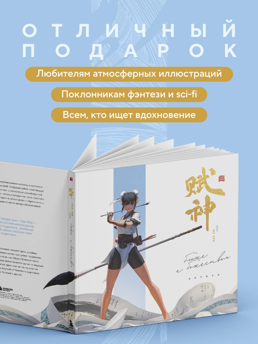 666К (Кан Лю) - китайский диджитал-художник и профессиональный иллюстратор, работающий в индустрии игр и фэнтези-арта. Он сотрудничал с Blizzard Entertainment и Riot Games, где разработал бесчисленное множество концепт-артов, дизайнов персонажей и миров для таких проектов, как Legends of Runeterra, Valorant и League of Legends. Этот артбук - первая опубликованная коллекция иллюстраций по оригинальной авторской вселенной «Одаренные Божества», которая явилась результатом случайного эксперимента и желания отбросить рамки. Собрание работ, сочетающее эстетику восточного фэнтези и легкой научной фантастики.| Издательство | ООО "Издательство "Эксмо" |