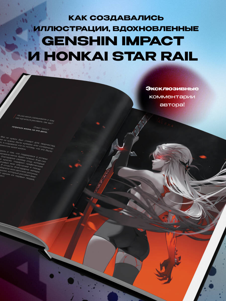 Перед вами авторский артбук российской художницы ALEXA, которая известна своими ослепительными фанартами - иллюстрациями женских персонажей по мотивам таких вселенных, как: Genshin Impact, Honkai Star Rail, Zenless Zone Zero и многим другим. Властные, сильные, красивые и умные женщины, которые побуждают падать ниц, ожидают читателя внутри. На страницах артбука собраны лучшие работы в период с 2022 по 2024 год. Все иллюстрации сопровождаются небольшим рассказом художницы о себе и своем творчестве, где она поведает об особенностях стиля, авторских техниках, идеях вдохновения, стоящими за созданием работ, и даже пошагово разберет несколько из них. Этот сборник - прекрасная возможность не только полюбоваться эстетикой дорогих сердцу персонажей, но и узнать любимого художника поближе, почерпнуть что-то новое и вдохновиться на создание чего-то своего.| Издательство | ООО "Издательство "Эксмо" |