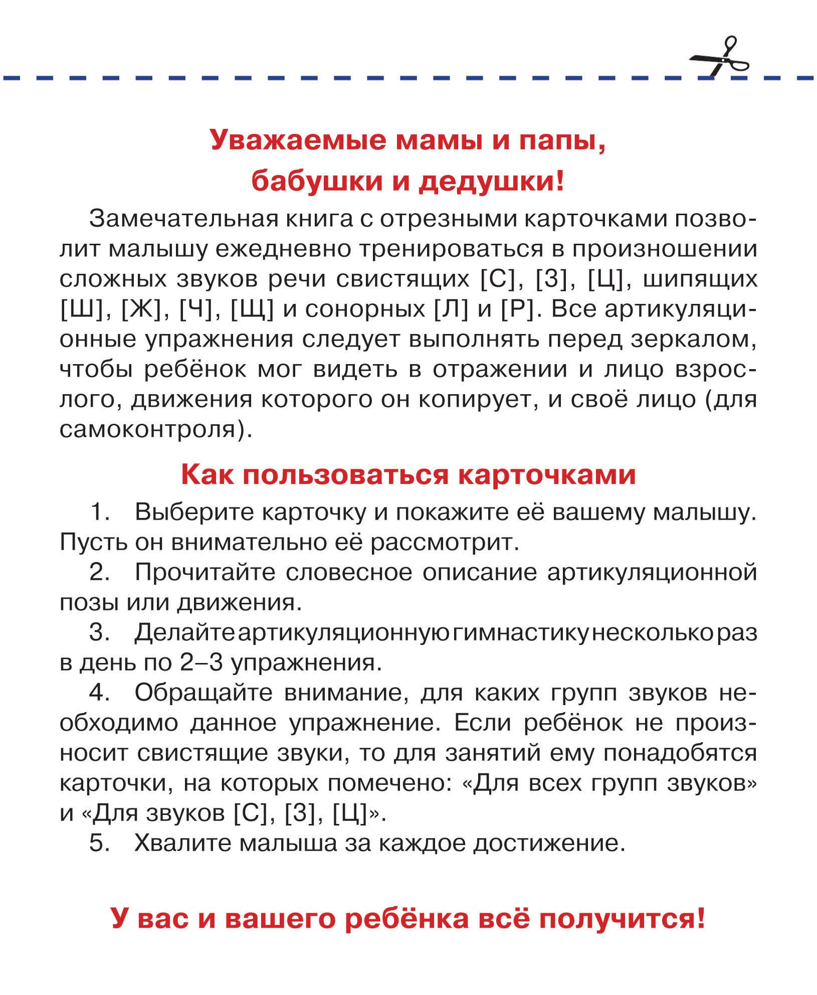 Играем, развиваем речь, говорим правильно! Книга с удобными отрезными карточками «Артикуляционная гимнастика» - незаменимый помощник для родителей, логопедов и воспитателей. Весёлые упражнения, простые инструкции и яркие иллюстрации помогут ребёнку: • улучшить произношение звуков; • развить речевые мышцы; • улучшить дикцию и выразительность речи. Игровая форма делает занятия увлекательными, а компактные карточки удобно брать с собой в дорогу или на прогулку. Занимайтесь всего 5-10 минут в день - и уже скоро ваш малыш будет говорить чётко и уверенно! Подарите ребёнку лёгкость в общении - начните тренироваться уже сегодня!| Издательство | Издательство "АСТ" |