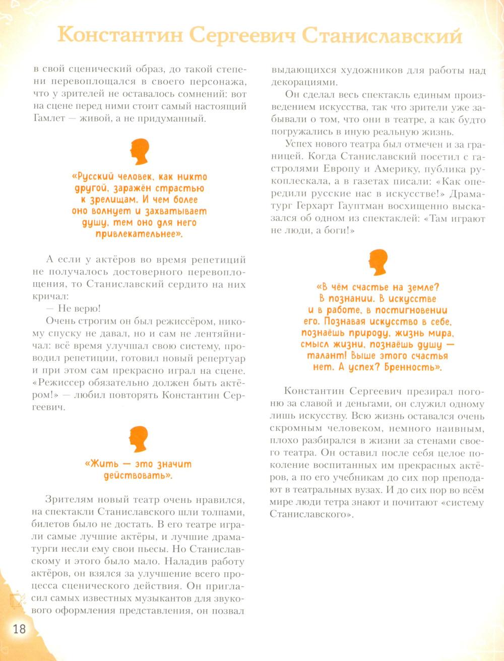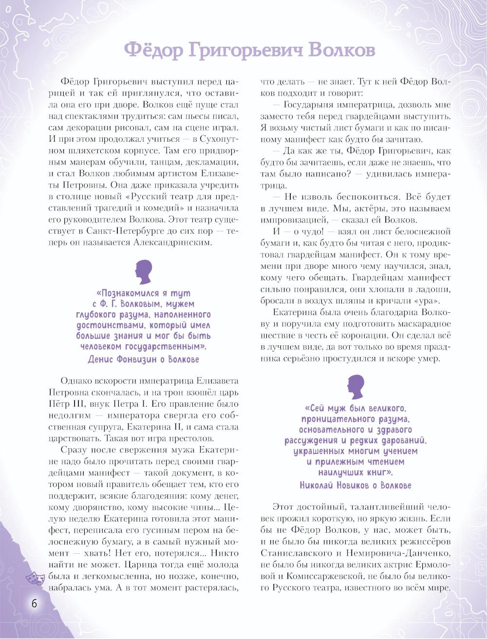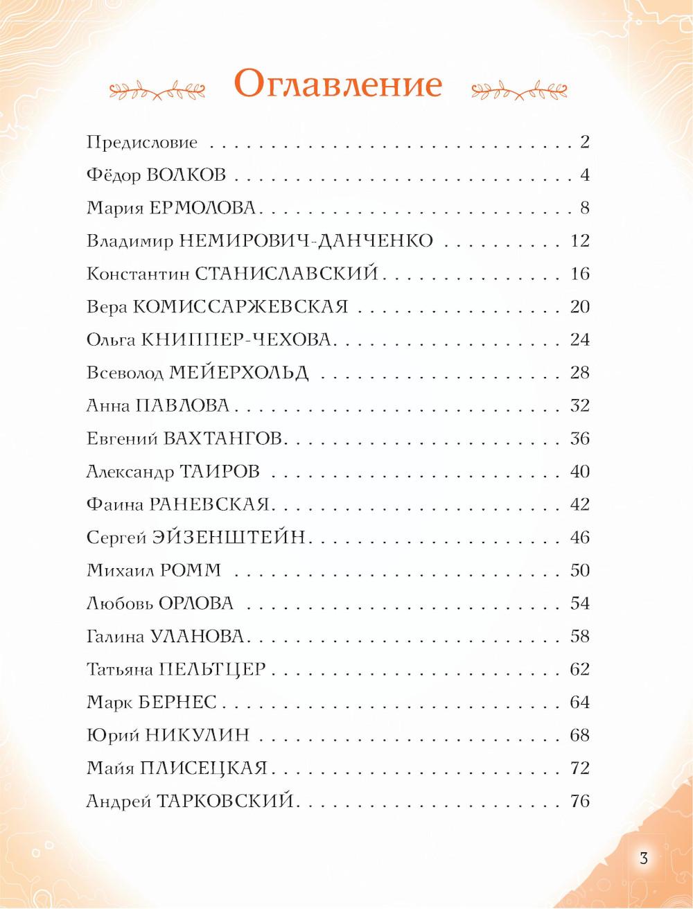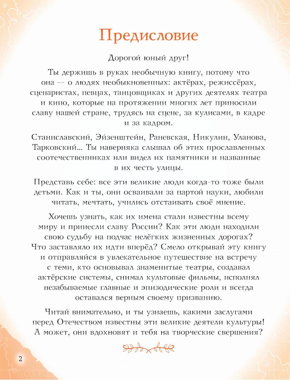 Эта книга патриотической серии «Великие люди великой страны» рассказывает о двадцати наших знаменитых соотечественниках - актёрах, режиссёрах, сценаристах, певцах, танцовщиках и других деятелях театра и кино, чьи имена навсегда останутся в истории России. Кто основал самый первый русский театр? Как цирковой клоун без профессионального образования покорил огромную страну? Какому культовому режиссёру подражают во всём мире? Захватывающие сюжеты в жанре нарративного нонфикшена, исторических «детективов» и «боевиков»! В каждом рассказе - вдохновляющая читателей на собственные свершения история успеха, невероятный пример силы воли и стойкости характера! Динамичные, запоминающиеся, современные, яркие иллюстрации созданы специально для этой книги! Книги серии получили заслуженно высокую оценку - в 2024 году они были номинированы на премию Российского общества «Знание» в категории «Лучшая просветительская книга». Издание предназначено для среднего школьного возраста, однако будет интересно и взрослым, а также станет неповторимым подарком по любому поводу для всех, кто любит Россию и гордится ею. Читайте всей семьёй и узнавайте всё самое интересное о великих людях нашей страны!