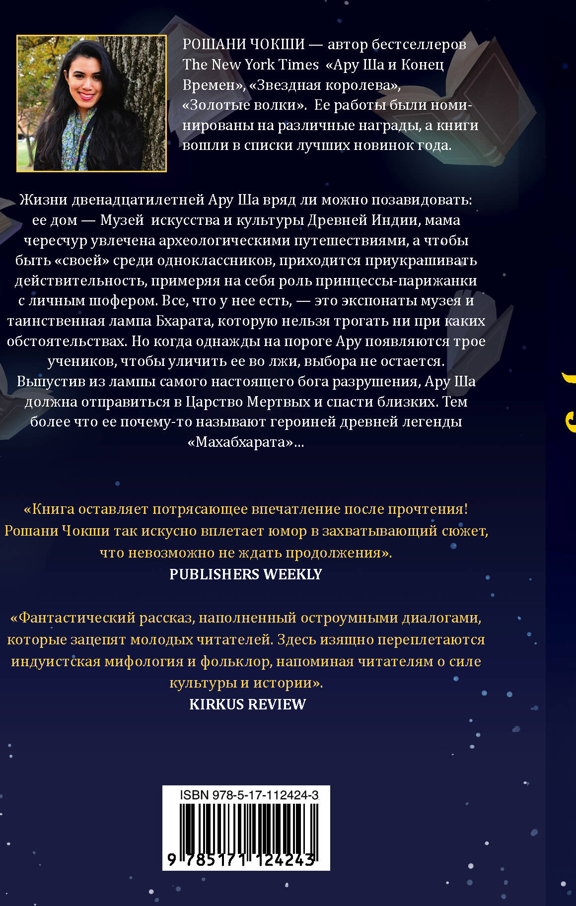 Жизни двенадцатилетней Ару Ша вряд ли можно позавидовать: ее дом - Музей древнеиндийского искусства и культуры, мама чересчур увлечена археологическими путешествиями, а чтобы быть "своей" среди одноклассников, приходится приукрашивать действительность, примеряя на себя роль принцессы-парижанки с личным шофером. Все, что у нее есть - это экспонаты музея и таинственная лампа Бхарата, которую нельзя трогать ни при каких обстоятельствах. Но когда однажды на пороге Ару появляются трое учеников, чтобы уличить ее во лжи, выбора не остается. Выпустив из лампы самого настоящего бога разрушения, Ару Ша должна отправиться в Царство Мертвых и спасти близких. Тем более что ее почему-то называют героиней древней легенды "Махабхарата"…| Издательство | ИЗДАТЕЛЬСТВО "АСТ" |
