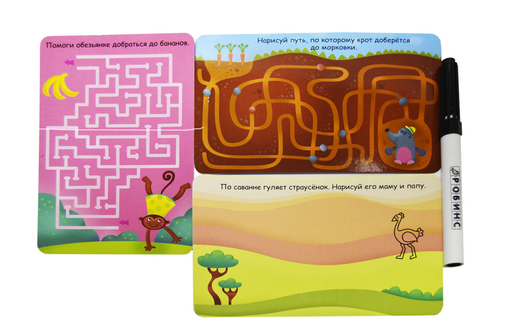 • Фломастер легко стирается: задания можно выполнять снова и снова.
