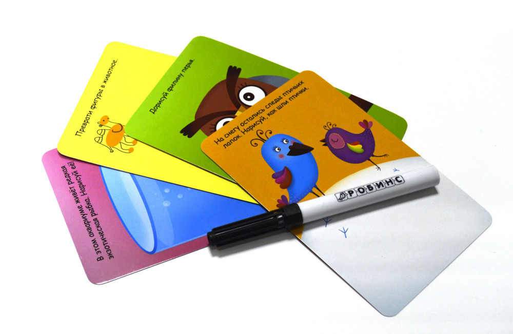 • Для работы с карточками подходит любой фломастер на водной основе.