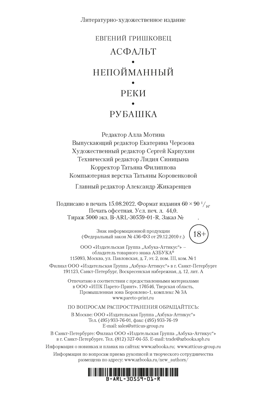 Аннотация: Асфальт. Непойманный. Реки. Рубашка