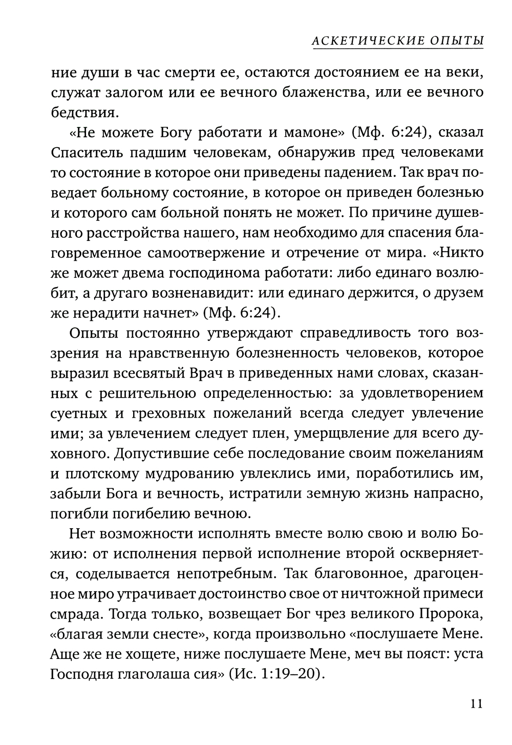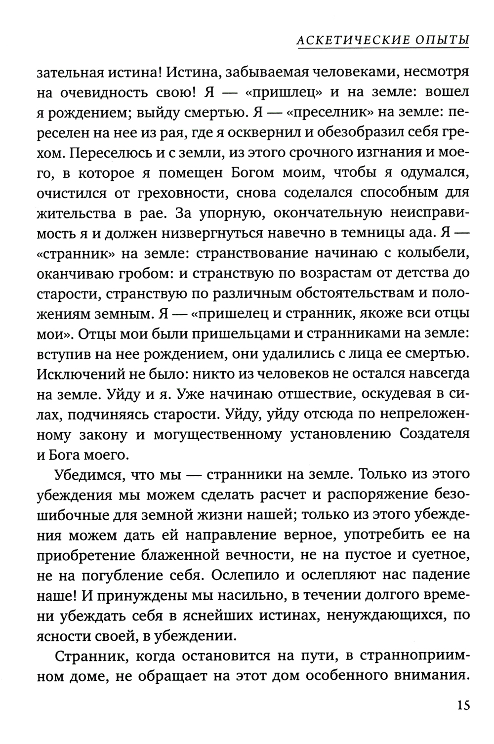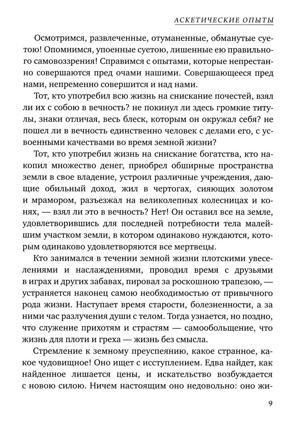 Святитель Игнатий (в миру Дмитрий Александрович Брянчанинов; 1807-1867) - епископ Кавказский и Черноморский, мыслитель, богослов и видный аскетический писатель. До пострижения был вхож в аристократические дома и имел знакомства с И.А. Крыловым, В.А. Жуковским, А.С Пушкиным, К.Н. Батюшковым и М.И. Глинкой, кроме того, признавался замечательным декламатором. Несмотря на несогласие родителей, по окончании Инженерного училища поступил в Александро-Свирскую обитель и вскоре перешел в Семигородную пустынь. По прошествии нескольких лет по рекомендации Николая I стал настоятелем Санкт-Петербургской Троице-Сергиевой пустыни. В «Аскетических опытах» изложено учение святых Отцов о монашестве. В издание входят статьи, написанные святителем Игнатием в разные времена и посвященные аскетическим вопросам, возникавшим в обществе иноков и боголюбивых мирян, с которыми он находился в духовном сношении: «...признаю себя обязанным представить христианскому обществу отчет по согляданию мною земли обетованной, точащей духовные дары и блага, - по согляданию монашеской жизни, какою она является в святом предании Православной Восточной Церкви и какою промысл Божий привел созерцать ее в некоторых живых представителях ее». Печатается по изданию 1886 года (Сочинения Епископа Игнатия Брянчанинова. Том 1. Аскетические опыты. - СПб. : Издание книгопродавца И. Л. Тузова, 1886. - 570 с).| Издательство | Омега-Л |