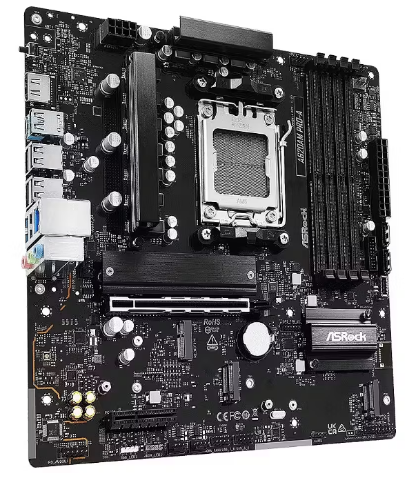 Материнская плата ASRock A620AM Pro‑A это компактная micro‑ATX плата на базе чипсета AMD A620A и сокета AM5. Предназначена для сборки универсальных рабочих или игровых систем с процессорами Ryzen (серии 7000+). Оснащена четырьмя слотами под оперативную память DDR5, поддерживает три накопителя M.2, имеет HDMI-разъём и современный набор портов, что делает её практичным выбором для эффективной и доступной сборки.