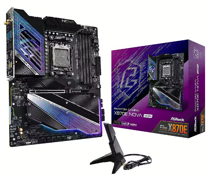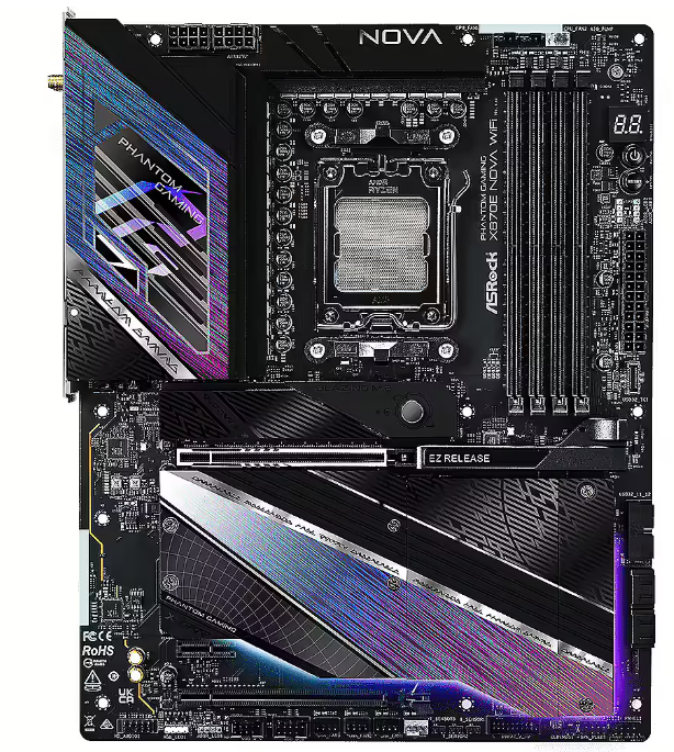 ASRock X870 Nova материнская плата на чипсете AMD X870 для процессоров AM5. Обеспечивает высокую производительность, поддержку DDR5 памяти, PCIe 5.0 и современные интерфейсы подключения. Идеальна для сборки игровых и рабочих ПК высокого уровня.
