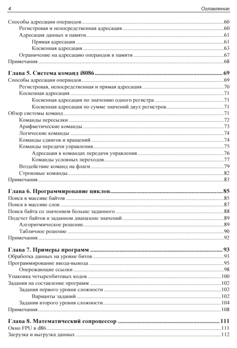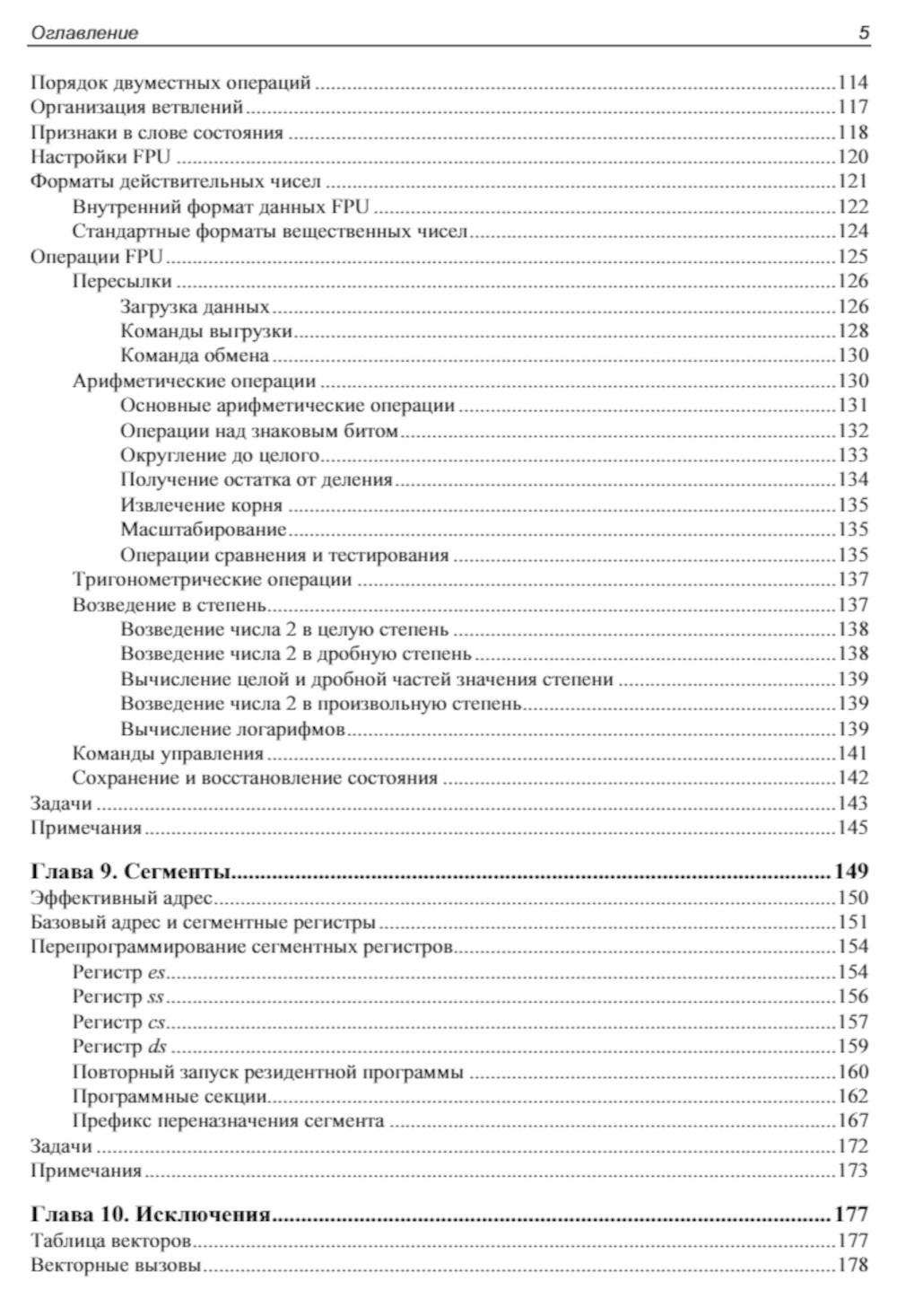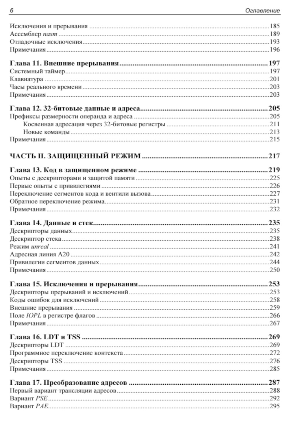 Книга является практическим пособием по программной модели процессоров i80x86/64. Простейшие элементы этой модели (переменные, константы, методы адресации и система команд) изучаются с помощью ассемблера a86, отладчика d86. 32-битные возможности i80x86, включая защищенный режим, вентили, исключения и прерывания, привилегии, страничное преобразование, исключения, LDT и TSS, а также 64-битные режимы процессора x64 с исключениями и прерываниями в long mode изучаются с использованием ассемблера nasm.| Издательство | BHV(БХВ) |