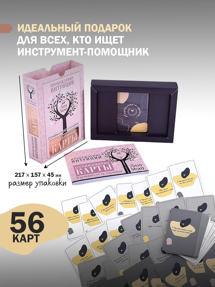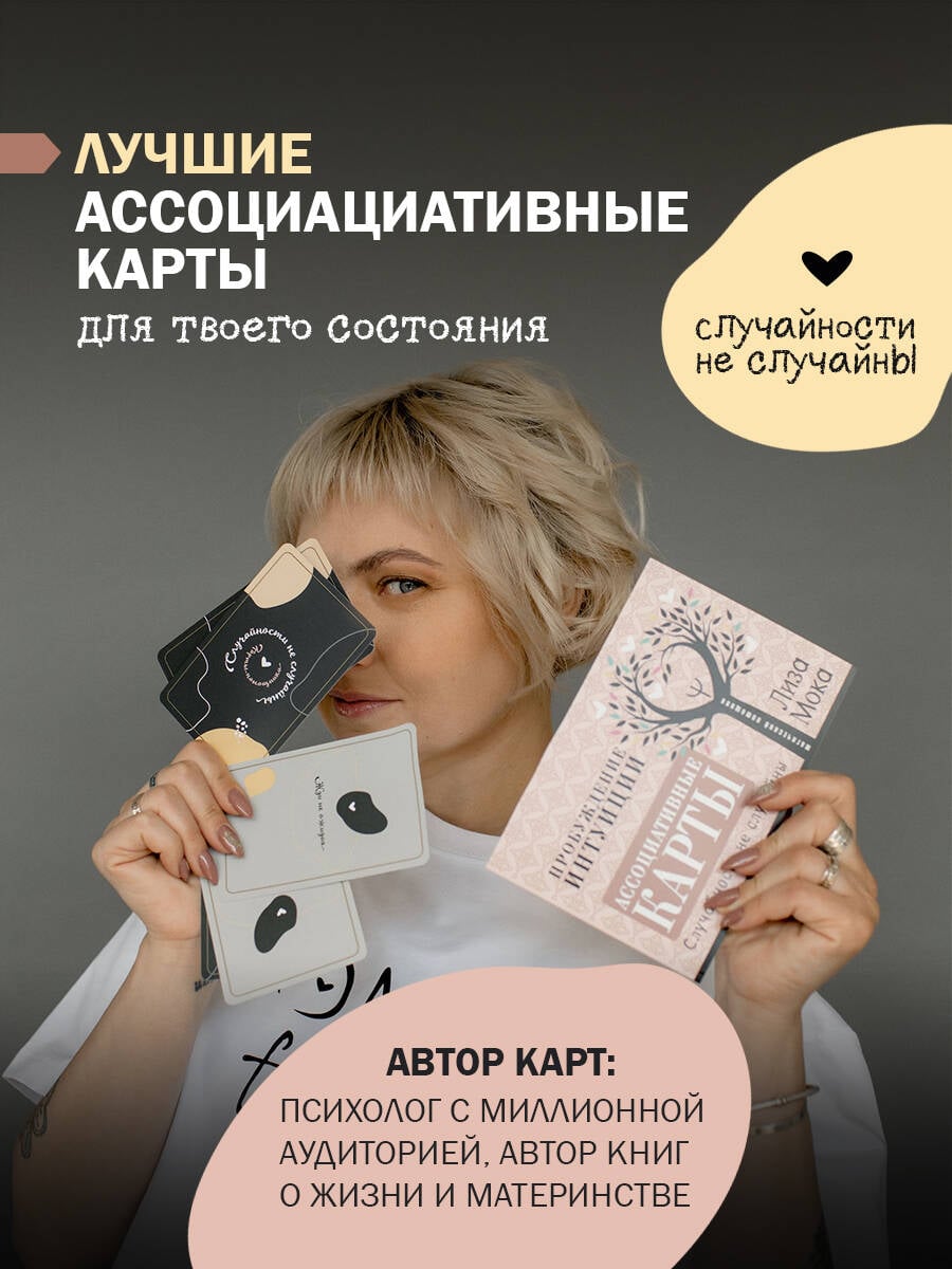 Интуитивные карты «Случайности не случайны. Карты-помощники, пробуждающие интуицию» созданы известным блогером Лизой Мокой. Простые фразы, которые во найдете на этих картах, помогут вам обратиться к собственным интуиции и подсознанию, получить ответ на любой вопрос, поддержку в сложной ситуации и настрой на день. Интуитивные карты-помощники просты в использовании, а подробная инструкция, составленная Лизой Мокой, поможет вам в решении любых задач.