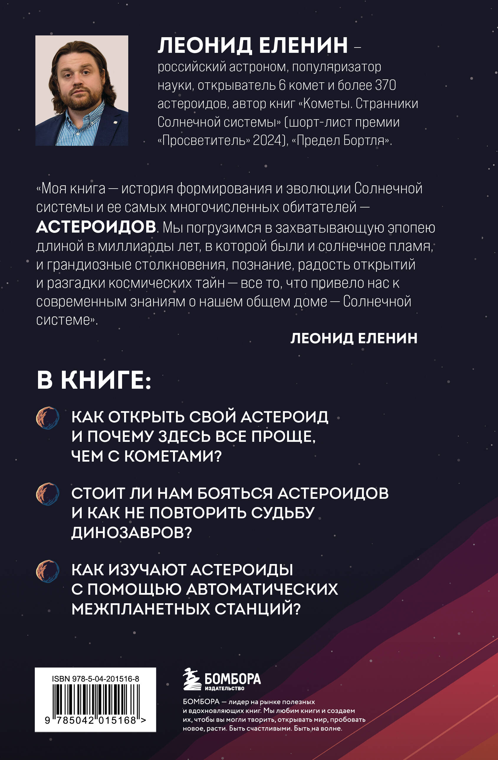 «Моя книга - история формирования и эволюции Солнечной системы и ее самых многочисленных обитателей - астероидов. Мы погрузимся в захватывающую эпопею длиной в миллиарды лет, в которой были и солнечное пламя, и грандиозные столкновения, познание, радость открытий и разгадки космических тайн - все то, что привело нас к современным знаниям о нашем общем доме - Солнечной системе». - Леонид Еленин, российский астроном, популяризатор науки, открыватель 6 комет и более 370 астероидов, автор книг «Кометы. Странники Солнечной системы» (шорт-лист премии «Просветитель» 2024), «Предел Бортля» Из книги вы узнаете: - об открытии первого астероида Церера и его открывателе - Джузеппе Пиацци, священнике, ставшим астрономом; - о типах и классах астероидов: из чего они состоят, как отличаются их физико-химические свойства и все ли они одиноки; - о поясе астероидов между орбитами Марса и Юпитера, который мы сейчас называем Главным; - существовала ли на самом деле планета Фаэтон и что современные ученые думают про мифические объекты Солнечной системы; - действительно ли астероиды - крадущаяся во тьме угроза для нашей планеты, что мы об этом знаем сейчас и как пришли к этому знанию; - как открыть собственный астероид и почему это проще открытия кометы; - как ученые наблюдают за звездным небом в больших профессиональных обсерваториях и все ли они там видят; - сложно ли сесть на астероид и можно ли попасть в него космической «торпедой»; - сколько все же планет в Солнечной системе, почему Планета Х будоражит умы ученых и как они пытаются разгадать эту тайну.| Издательство | ООО "Издательство "Эксмо" |