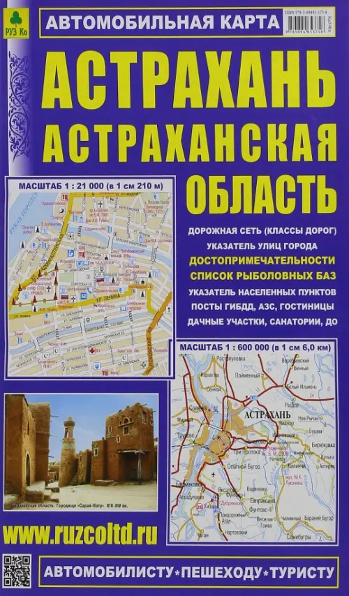 Астрахань. Астраханская область. Автокарта с достопримечательностями. Карта Астрахани: масштаб 1:21000 (в 1 см 210 м). Карта Астраханской области: масштаб 1:600000 (в 1 см 6 км).