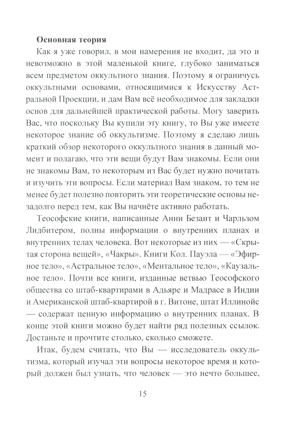 Одна из лучших классических книг для погружения в тему астральных путешествий. Именно эта книга научит вас навыкам глубокого чувствования, выходу в астрал и, что не мало важно, возвращению в свое тело. Эта книга подойдет, как новичкам в практике осознанных сновидений и выхода в астрал, так и тем, кто хочет усилить глубину своих погружений и качество своих астральных ощущений.| Издательство | Атмосфера |