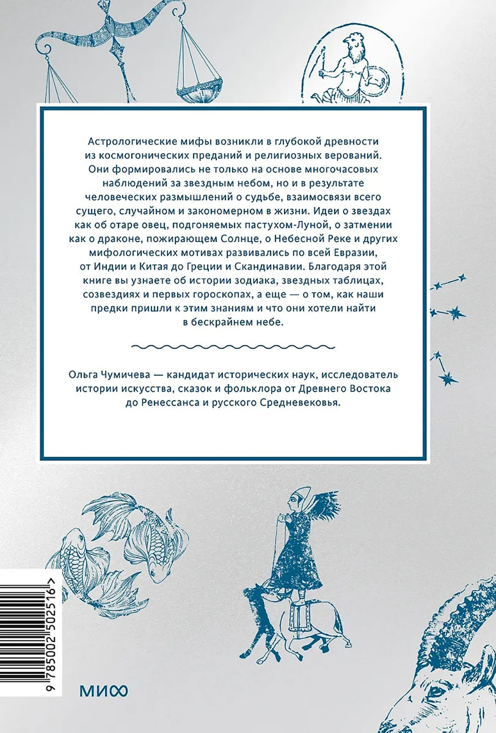 Астрологические мифы возникли в глубокой древности из космогонических преданий и религиозных верований. Они формировались не только на основе многочасовых наблюдений за звездным небом, но и в результате человеческих размышлений о судьбе, взаимосвязи всего сущего, случайном и закономерном в жизни. Идеи о звездах как об отаре овец, подгоняемых пастухом-Луной, о затмении как драконе, пожирающем Солнце, о Небесной Реке и других мифологических мотивах развивались по всей Евразии, от Индии и Китая до Греции и Скандинавии. Благодаря этой книге вы узнаете об истории зодиака, звездных таблицах, созвездиях и первых гороскопах, а еще - о том, как наши предки пришли к этим знаниям и что они хотели найти в бескрайнем небе.| Издательство | Манн, Иванов и Фербер |