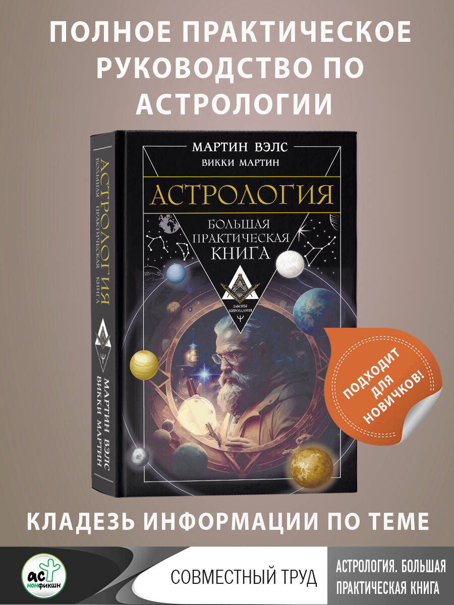 Мартин Вэлс - известный астролог, таролог, автор бестселлеров, более 20 лет изучает влияние эзотерических практик на жизнь человека, преподает, является автором собственных методик. Викки Мартин - профессиональный астролог, ученица Мартина Вэлса, автор популярных астрологических книг. Книга объединяет в себе труды двух известнейших мастеров-астрологов - Мартина Вэлса и его лучшей ученицы. Это практическое руководство - кладезь информации по теме астрологии. В нем вы найдете объяснение всех основных астрологических понятий, все правила и особенности построения космограммы, натальной карты, тонкости и нюансы трактовок. С помощью этой книги вы сможете составлять и трактовать гороскоп, лучше узнавать людей, выбирать самые верные пути и решения, привлекать в жизнь новые возможности. Книга написана простым языком, без "воды" и хорошо структурирована. Она станет отличным учебником и настольной книгой для начинающего астролога и прекрасным дополнением библиотеки опытного профессионала. В издании использованы материалы из выходивших ранее книг: "Все секреты астрологии. Натальная карта: узлы, дома, тонкости аспектов", "Астрология. Глубинное влияние звезд, планет и созвездий. Космограмма: составление и трактовка".| Издательство | ИЗДАТЕЛЬСТВО "АСТ" |