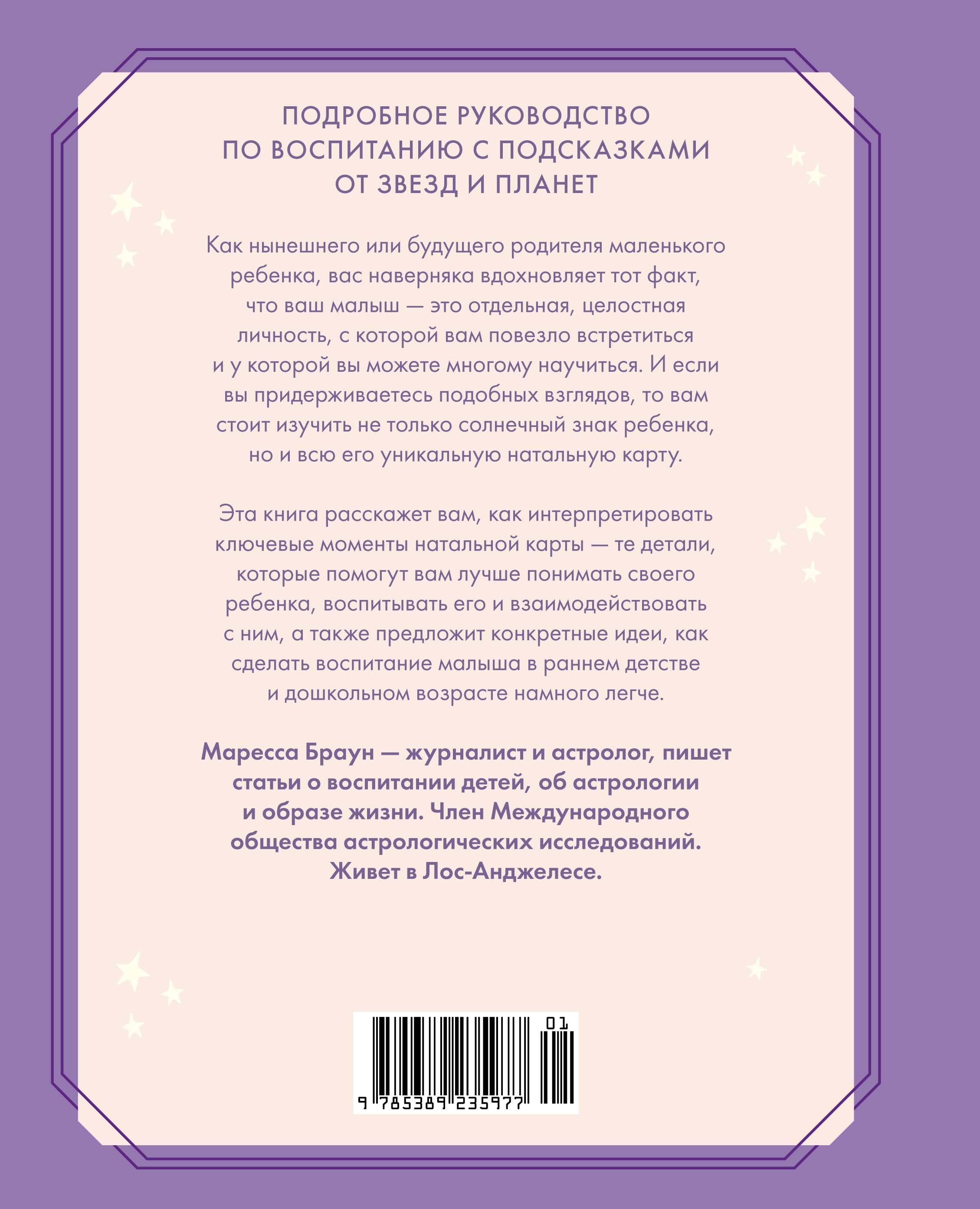 Подробное и доступное руководство по воспитанию детей младшего и дошкольного возраста с помощью звезд от астролога и журналиста Марессы Браун. Разбирая особенности солнечного знака малыша и составляющие его натальной карты, автор показывает, как лучше узнать личность ребенка, черты его характера, стиль общения, симпатии и антипатии, понять, что вдохновляет его и делает счастливым, а что заставляет капризничать, а также определить, какие книги, игрушки и занятия подходят ему лучше всего. Книга состоит из трех частей ("Двенадцать знаков зодиака", "Разум, дух и благополучие вашего малыша", "Отношения родителя и ребенка - как укрепить связь с вашей растущей звездочкой") и рассматривает педагогические вопросы с учетом вашей собственной астрологической принадлежности, а также предлагает способы помочь самовыражению вашего малыша и улучшить его физическое и эмоционально-психологическое состояние. Это книга о воспитании, которая учитывает все особенности вашего уникального ребенка, опираясь на неподвластную времени мудрость зодиака.| Издательство | Азбука-Аттикус Издат.группа ООО |