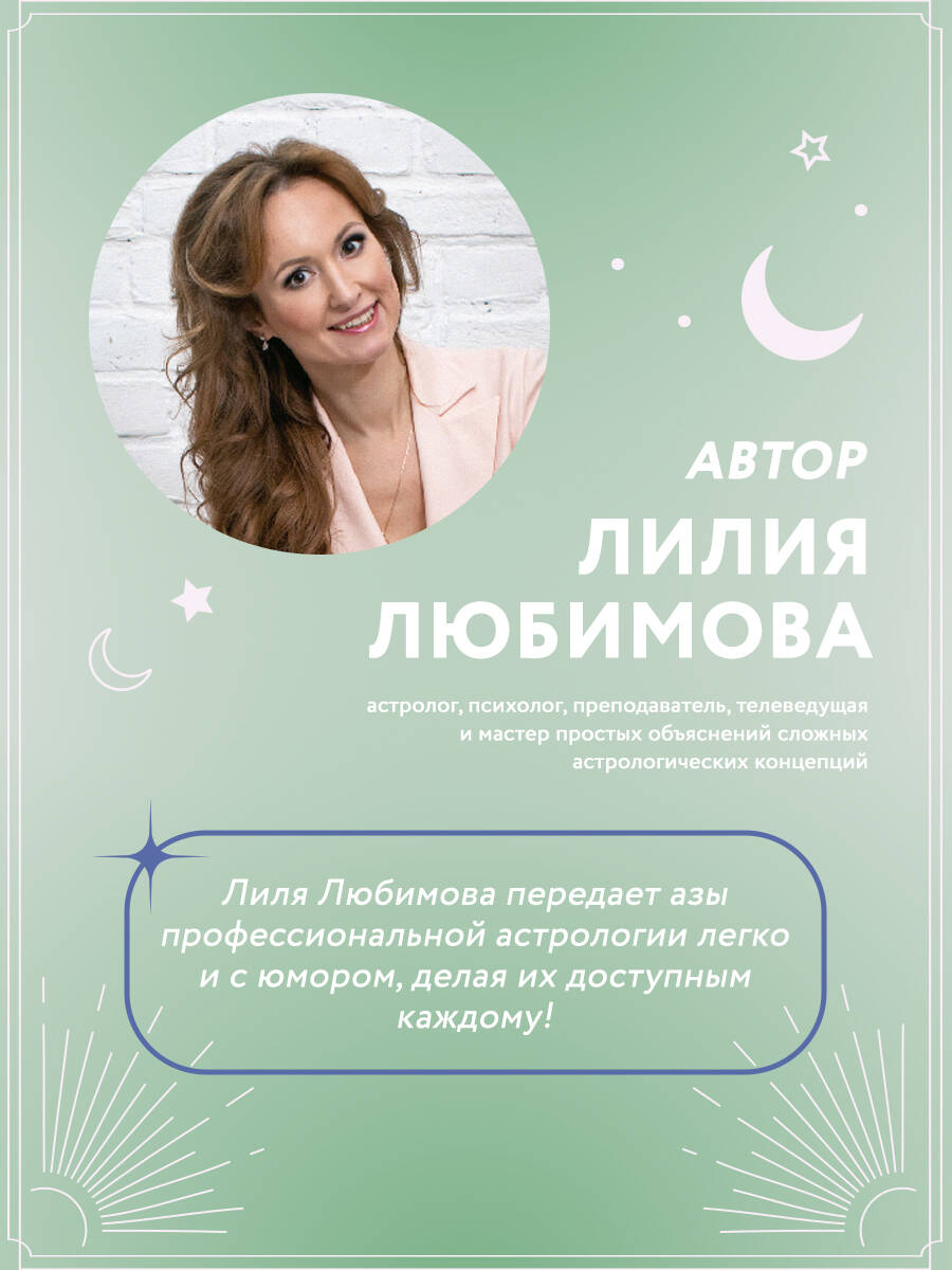 Лиля Любимова передает азы профессиональной астрологии легко и с юмором, делая их доступным каждому. Она говорит: журнальные гороскопы не работают, потому что не учитывают множества факторов, и предлагает читателю действующий ключ к пониманию себя и других. В доступной и увлекательной манере автор дает описание знаков Зодиака, взаимодействия планет и аспектов, а также темы, которые начинающим обычно не дают. Например, положение в карте так называемых фиктивных планет: Белой Луны, Черной Луны, Лунных узлов. Вишенка на торте - авторская концепция о построении диспозиторов. Освоив этот навык, читатель научится определять, где находится средоточие внутренней энергии человека, каковы его истинные мотивации потребности. Книга также включает разделы «Практикум», из которых вы узнаете: - как правильно встретить день рождения и заложить удачное начало своего персонального года, - как выбрать время для важной даты, - как восстановить энергию, - каким знакам трудно и легко общаться и почему, - когда проводить косметические процедуры, - каковы предпочтения разных знаков в еде и одежде.| Издательство | ООО "Издательство "Эксмо" |