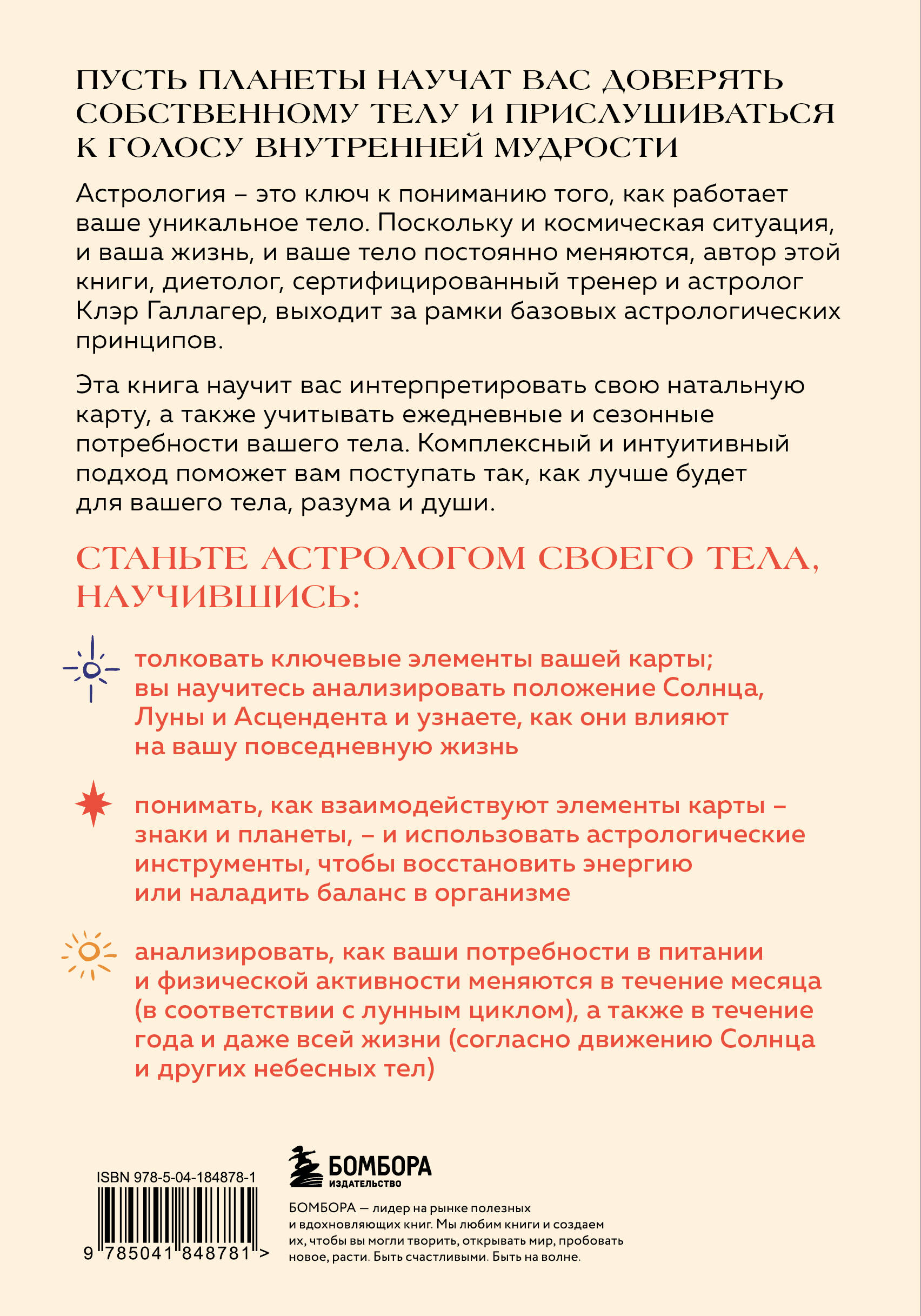 Астрология - еще один ключ к пониманию того, как работает ваше уникальное тело. Поскольку и космическая ситуация, и ваша жизнь, и ваше тело постоянно меняются, автор выходит за рамки базовых астрологических принципов. Книга научит вас интерпретировать свою натальную карту, а также учитывать ежедневные и сезонные потребности вашего тела. Комплексный и интуитивный подход поможет вам поступать так, как будет лучше персонально для вас, для вашего разума и души.| Издательство | ООО "Издательство "Эксмо" |