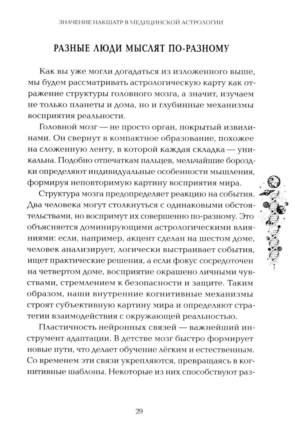 Чтобы распробовать вкус апельсина, недостаточно продегустировать его кожуру: важно отведать его мякоть. Накшатры - это и есть астрологическая мякоть с прожилками индивидуальных реакций человека, с волокнами его инстинктивных повадок и привкусом кисло-сладких настроений, свойственных только его «сорту». Накшатры, будто в коконе из «цедры» знака, существуют, дополняя и обогащая друг друга. Владение инструментом накшатр - это высший пилотаж восточной астрологии. Мои дорогие коллеги, будьте уверены: использование накшатр в вашей консультативной практике позволит затронуть за живое и сделать разбор натальной карты душевным и эмоциональным. Более никаких обобщений, усредненности, шаблонирования и расплывчатости. Только адресно, персонализированно и наизнанку, о тонкостях и интимностях психоэмоциональной конструкции человека перед вами. Книга в ваших руках написана просто о сложном. Написана с любовью и уважением к астрологическому знанию, чистому, не оскверненному субъективными домыслами и магифренизмом. Отныне она ваш личный тренажер астромышления, который позволит качать мышцу логики, критического анализа и интуитивного яснознания.| Издательство | Эксмо |
