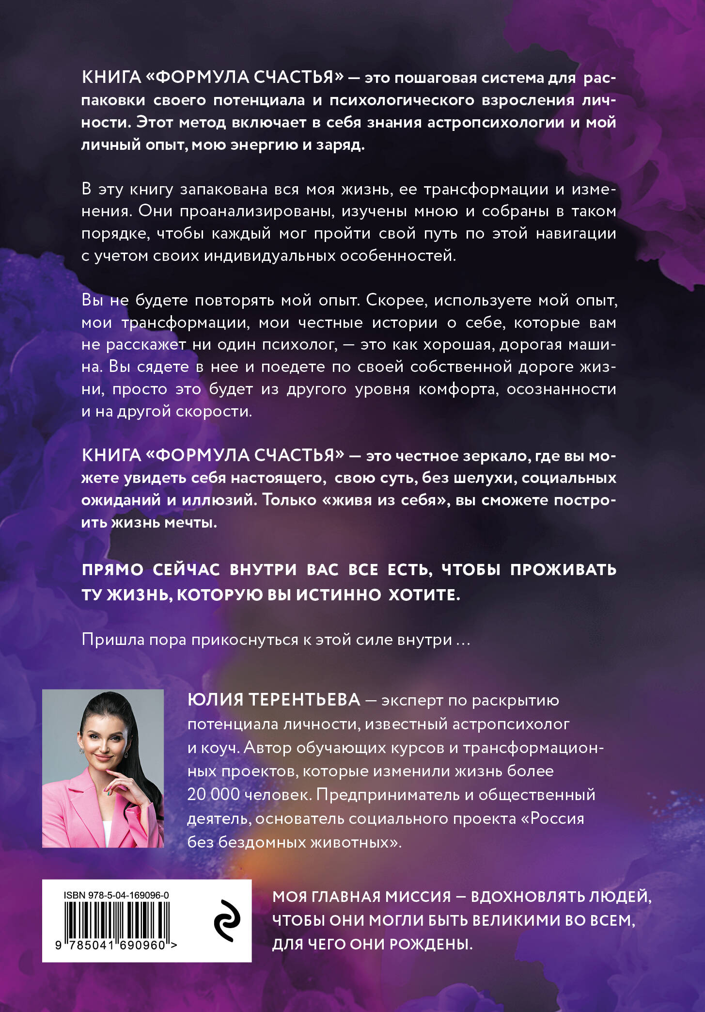 Книга «Формула Счастья» - это пошаговая система для распаковки своего потенциала и психологического взросления личности. Этот метод включает в себя знания астропсихологии и мой личный опыт, мою энергию и заряд. В эту книгу запакована вся моя жизнь, ее трансформации и изменения. Они проанализированы, изучены мною и собраны в таком порядке, чтобы каждый мог пройти свой путь по этой навигации с учетом своих индивидуальных особенностей. Вы не будете повторять мой опыт. Скорее, мой опыт, мои трансформации, мои честные истории о себе, которые вам не расскажет ни один психолог, - это как хорошая, дорогая машина. Вы сядете в нее и поедете по своей собственной дороге жизни, просто это будет из другого уровня комфорта, осознанности и на другой скорости. Книга «Формула Счастья» - это честное зеркало, где вы можешь увидеть себя настоящего, свою суть, без шелухи, социальных ожиданий и иллюзий. Только «живя из себя» может родиться жизнь мечты. Прямо сейчас внутри вас все есть, чтобы проживать ту жизнь, которую вы истинно хотите! Пришла пора прикоснуться к этой силе внутри!| Издательство | ООО "Издательство "Эксмо" |