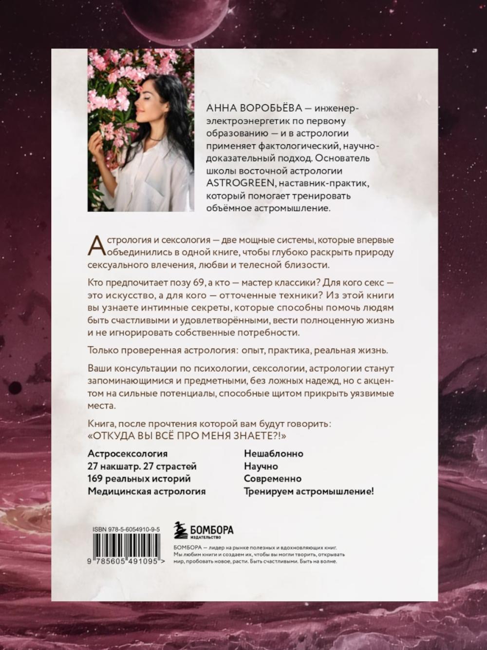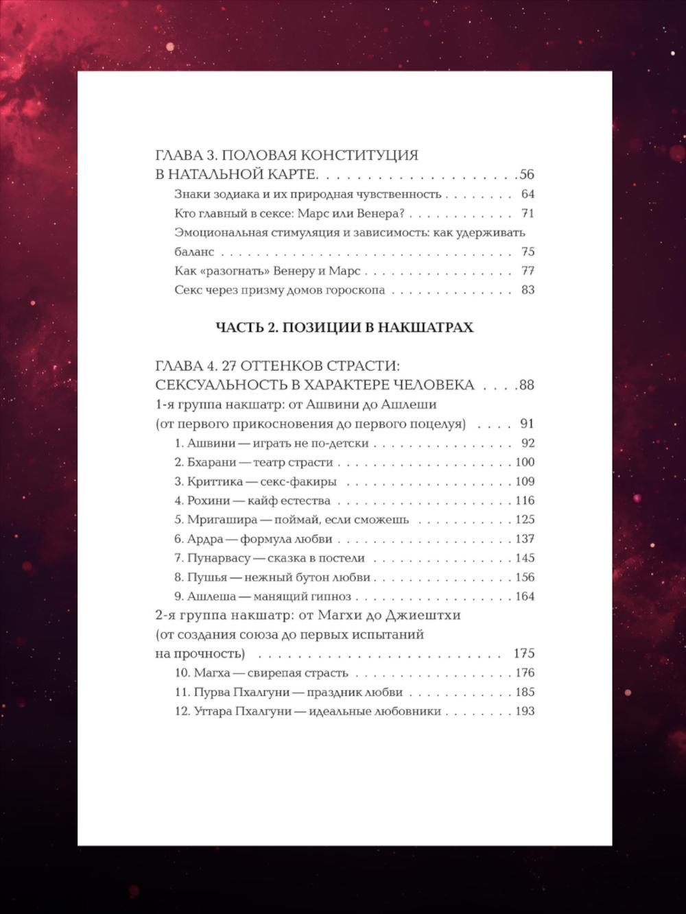Впервые две мощные системы - астрология и сексология - объединились в настоящем прорыве на стыке двух наук. С первых же страниц читатель становится участником живого и глубокого разговора о сексуальных желаниях, страсти и любви. В книге разворачивается целое исследование тонких граней интимной жизни. Следуя за содержанием, от глобальной миссии до природы мужского и женского, диалог постепенно спускает нас на более приземлённый, но не менее интригующий уровень- плотский, полный наслаждения. Ведь истинное предназначение и великие свершения невозможны в отрыве от земных удовольствий - прикосновений, ласки, контакта и взаимного понимания. Эта книга заинтересует не только астрологов, но и психологов, сексологов - всех, кто стремится жить не просто в балансе с собой, но и в гармонии с любимым человеком.| Издательство | Эксмо*** |