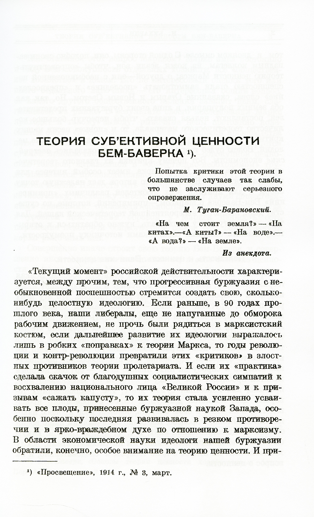 В настоящий сборник входят некоторые работы, главным образом, полемического характера, которые представляют и сейчас известный теоретический интерес. Почти вое они печатались в свое время в русских марксистских журналах, в первую очередь - «Просвещении»; статья о теории распределения Тугана-Барановского была напечатана в «Neue Zeit», и только критическая работа против проф. Оппенгеймера, написанная для этого же журнала, появляется впервые (она затерялась в начале войны, недавно лишь нашлась и была переслана из Германии при любезном содействии корреспондента «Правды», тов. Гаммы). Особняком стоят реферат о тов. Ленине, критические удары которого помогали преодолевать свои собственные теоретические недостатки, а также «Проект программы Коммунистического Интернационала».| Издательство | ЛЕНАНД |
