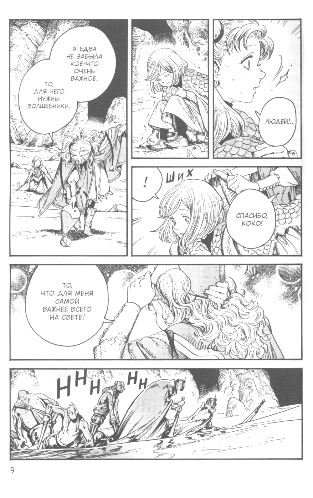Чтобы сдать Второй экзамен, Агата, Риче и Юиний спустились в подземелье на мысе Ромонон, где на них неожиданно напал Шляпник. С помощью Запретной магии колдун обратил Юиния в безумного зверя - с целью преподать подмастерьям в колпаках некий «урок». В то же время на другом конце подземелья Коко, Теция и Кифлий столкнулись лицом к лицу с бессмертными ромононцами - жертвами древней магии, всей душой ненавидящими волшебников. Сумеет ли учитель защитить своих учениц? Или смертельная рана уже предрешила исход сражения?.. У каждого есть свои желания и страхи. Каждому придётся принять свою силу... и бессилие.