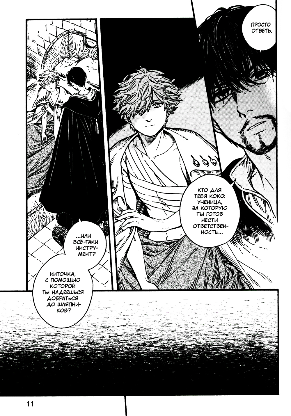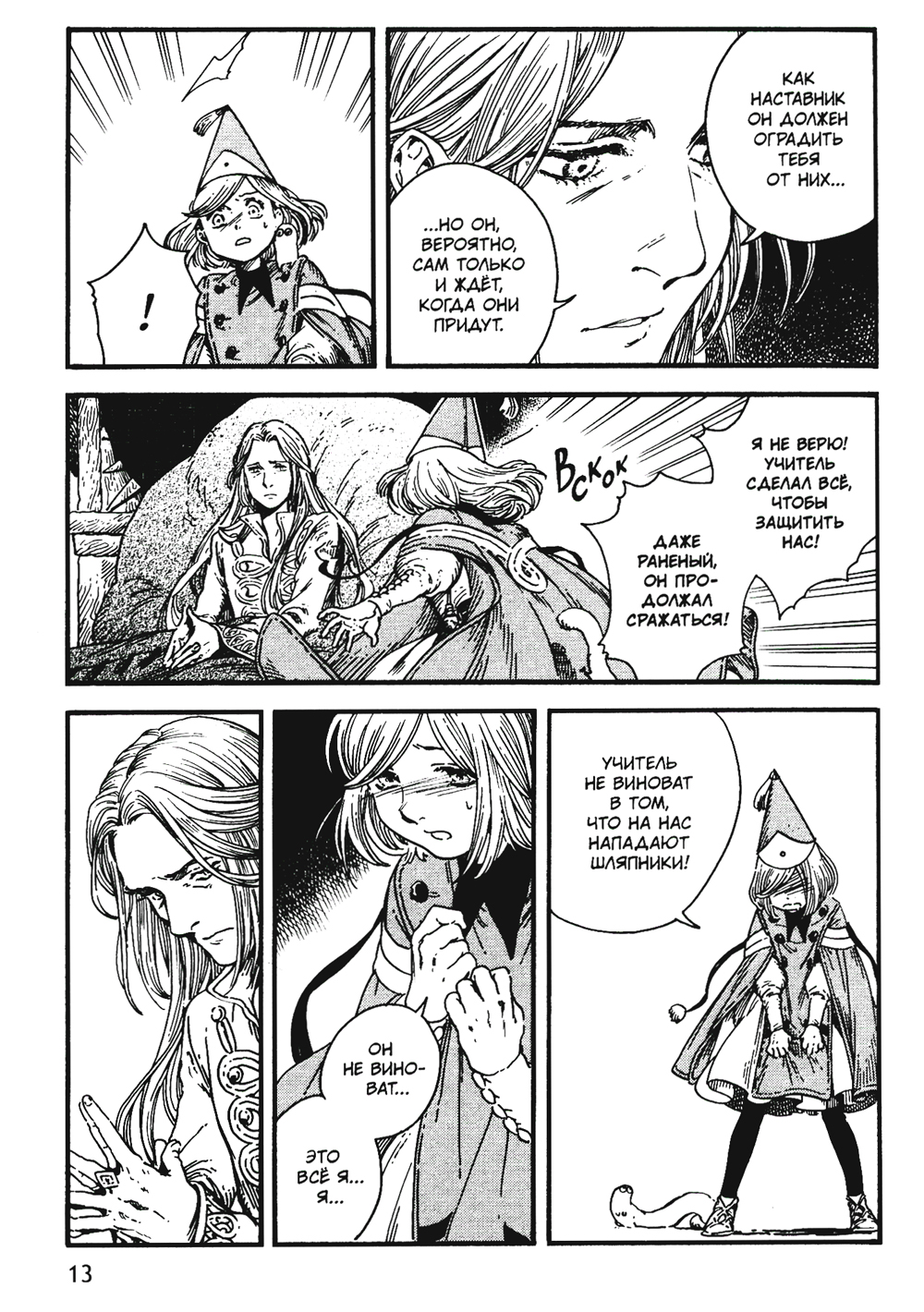 Коко вместе с подругами успешно сдала Второй экзамен, и лорд Бэльдарут приглашает её встретиться наедине. Втайне ото всех он предлагает девочке поступить к нему в ученицы и остаться в безопасности в Цитадели, а также рассказывает о связи Кифлия со Шляпниками. Не зная, кому теперь верить и как относиться к Кифлию, Коко сбегает из Цитадели и отправляется к Башне Гримуаров - единственному месту, где она ещё надеется найти ответ. Какие бы узы ни связывали магистра и его подмастерье, очередное испытание может разрушить их навсегда... Каждый сам решает, как колдовать и к чему стремиться, - и каждый сам выбирает, чему и у кого учиться...| Издательство | Фабрика комиксов |